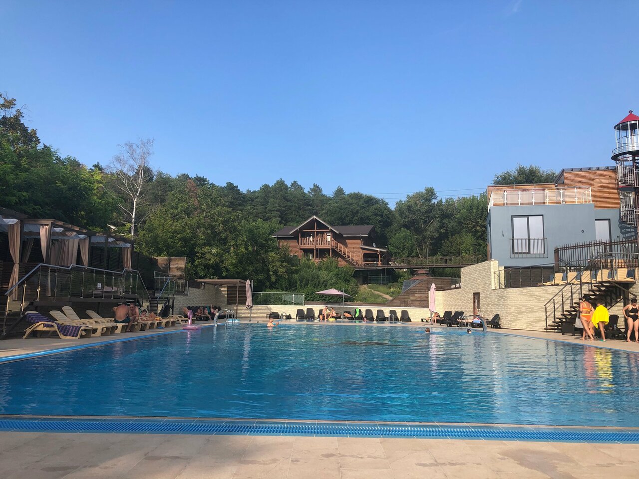 Классная база отдыха, имеются бассейны для детей с подогревом, в ресторане вкусная кухня.Домики чистые и уютные. Рекомендую