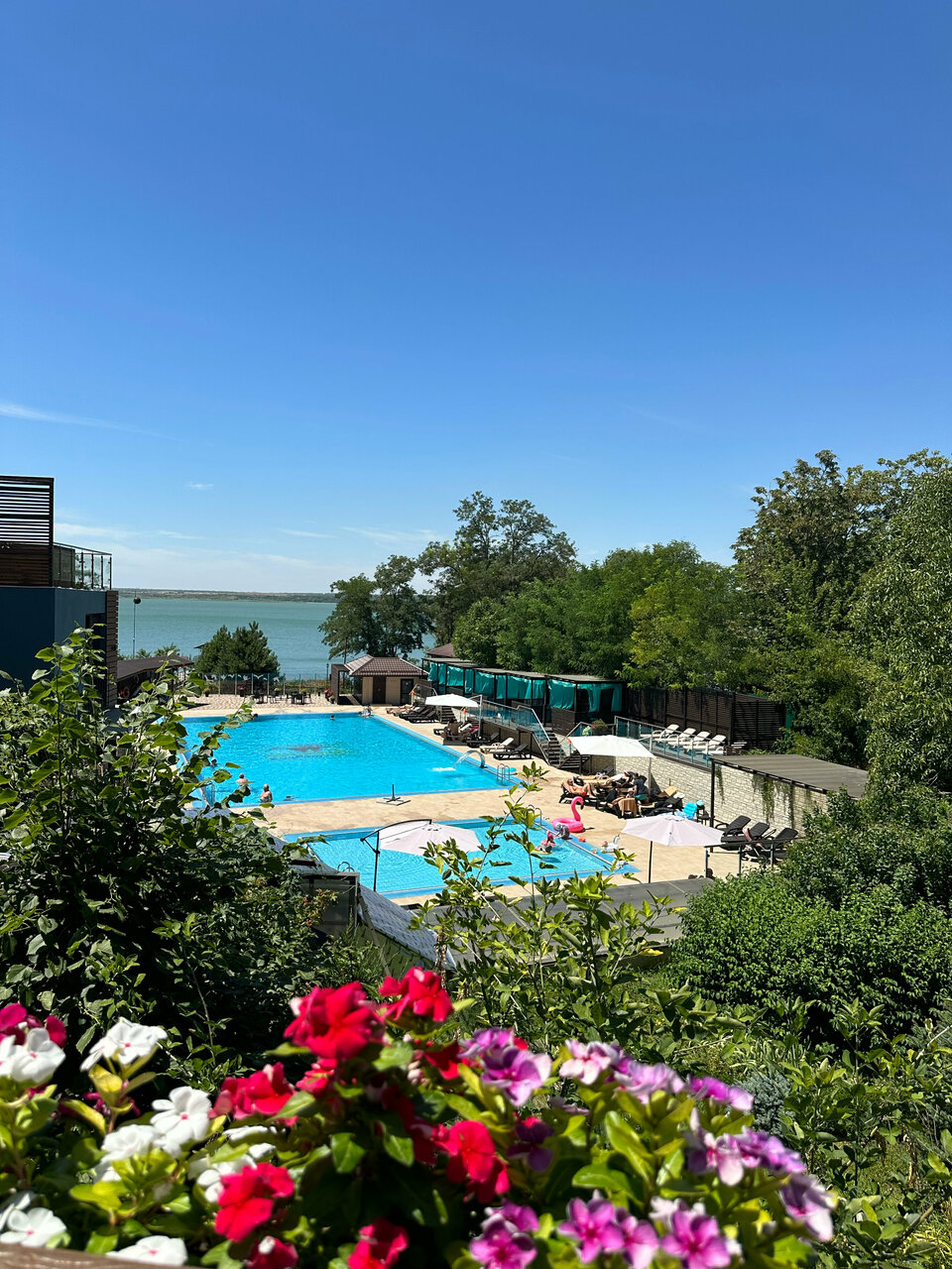 Отдыхали 21.07.2021 в целом очень все хорошо, номер чистый, прилегающая территория тоже, бассейны чистые( вечером ходили купаться было очень много мошек, и как мы были удивлены, когда утром пришли, и не одной мошки, абсолютно чистый бассейн), за это огромное спасибо обслуживающему персоналу:)!!! Нооооо на счёт ресторана( меню), это жесть заказали мы жаркое по домашнему, с курицей и со свиной, когда нам принесли мы были в шоке, еда была не доготовлена, мяса было очень мало! А и ещё просто ржачь, дочка попросили пюре и как вы думаете что нам принесли доширак, тот самый доширак!!! Ноооо это ещё не все утром, мы заказали кофе американо и чай с чебрицом! Мы были шокированы, что нам принесли все без сахара, — на мой вопрос почему без сахара, официант сказал что поговорит с повором!!! Ну так подвидам этоги в целом очень хорошо, не считая кухни, лучше брать своё!