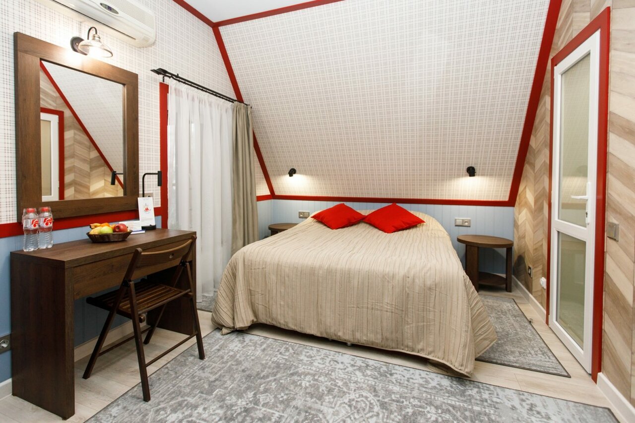 Удобства: — Номера с кондиционером, Wi-Fi, TV, санузлом; — 2 ресторана, 3 бара, кафе, банкетный зал; — Детская анимация, площадка, бассейн; — Бесплатная парковка, камера хранения; — Прокат лодок, катание на квадроциклах, рыбалка.