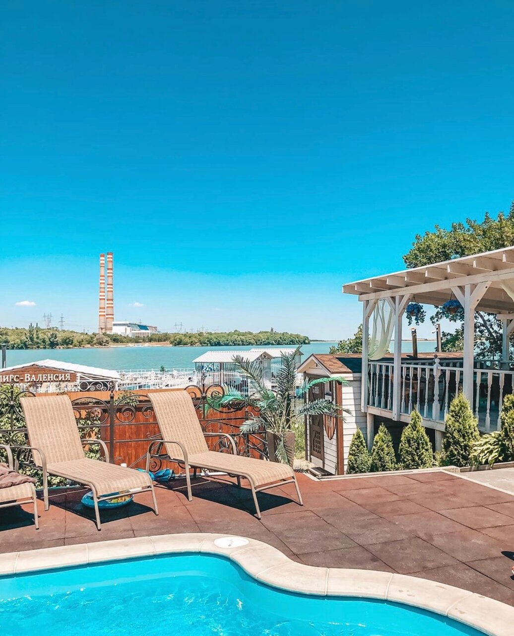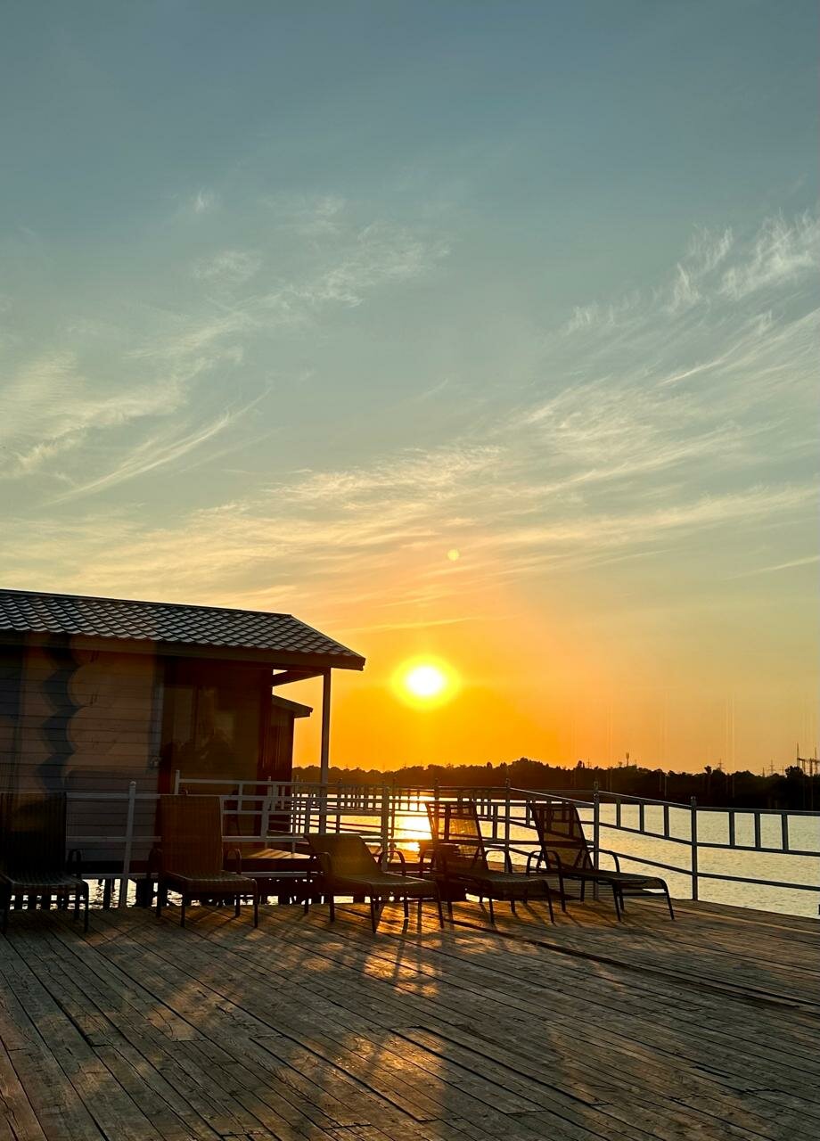 Если честно, не стоит своих денег. Вода на территории в водорослях и с запахом. Есть мангал. Номер брали в виде домика на воде на сваях — чисто, просторно, красивые закаты и рассветы. Но 6к в сутки, повторюсь, не стоит.