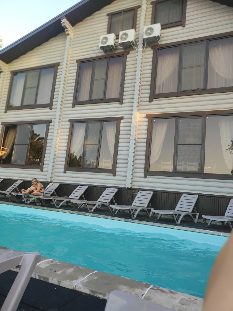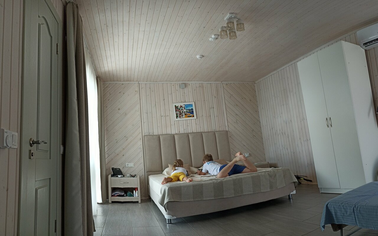 Отличная база отдыха, есть все необходимое. Номер — большая кровать , для ребёнка 8 лет есть кресло-раскладушка. Номер светлый, чистый, весь набор для умывания и душа присутствует. Бассейн чистят каждый вечер. На первом этаже есть столики и микроволновка, можно спокойно обедать или ужинать своими продуктами. Завтраки включены, очень приличные.
