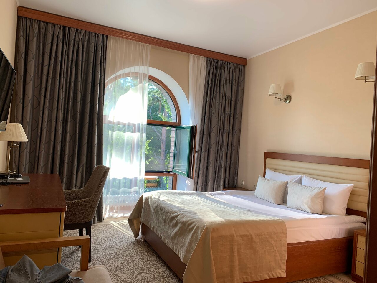 Вежливый персонал, свежие номера, отличные завтраки и ужины. Тишина, сосны и море рядом. Отличный отель, даже придраться особо не к чему.