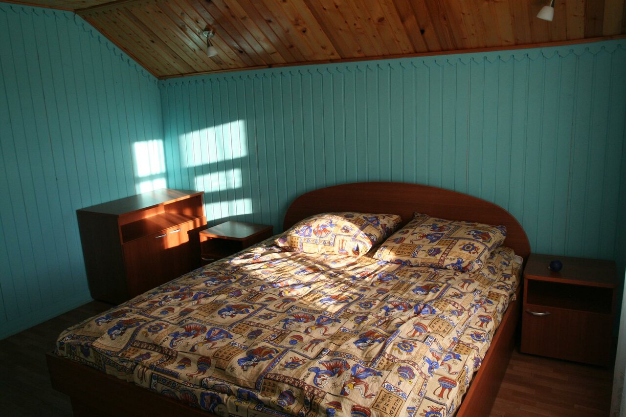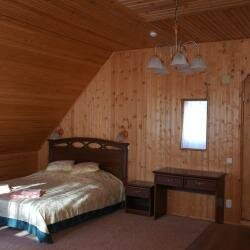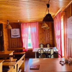 Распологается в двух километрах от поселка,пешком пол часа. Зато тишина и покой,если нет большого заезда. Не для привередливый. Вода в душе из озера. Есть завтраки. Обстановка в номерах как в пионерлагере.