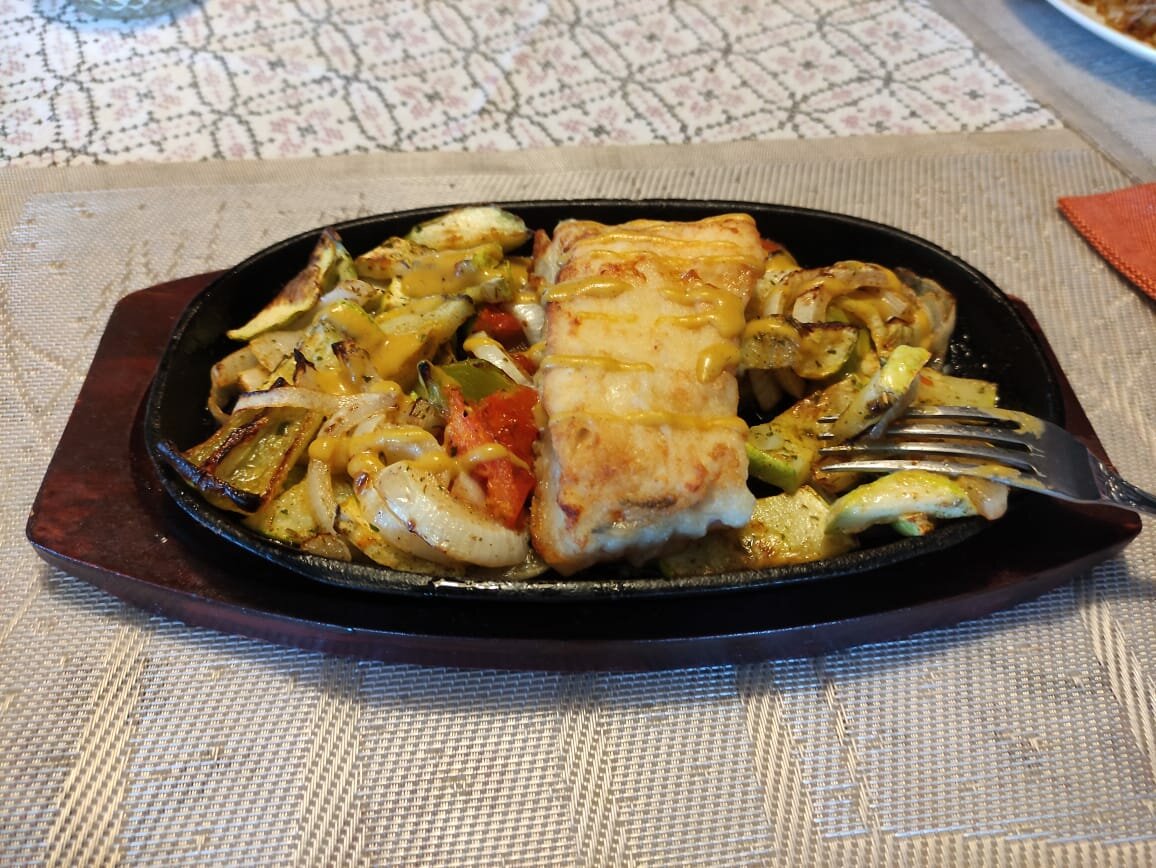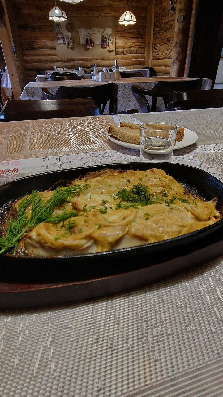 Кафе при отеле Соло. Зашли пообедать. Цена не соответствует качеству подаваемых блюд. Еда приготовлена ‘без души’. Как будто ингредиенты готовятся каждый отдельно, а перед подачей соединяются и подогреваются. Салат ‘Греческий’ подан с пропавшими огурцами (желтые и сухие) по стоимости ресторанного блюда, жаркое в горшочке (в мясной бульон порезан заранее отварный картофель и отварное мясо и подогрето), но оно так и осталось вареный картофель и без вкуса. Рыба под яблоками и сыром — просто не вкусно.