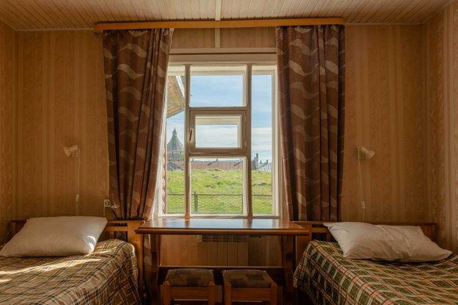 Одна из хороших гостиниц на Соловках, душ и туалет в номере, есть собственное кафе, завтраки и комплексные обеды. Часть окон выходят на монастырь и крепость, шикарные виды