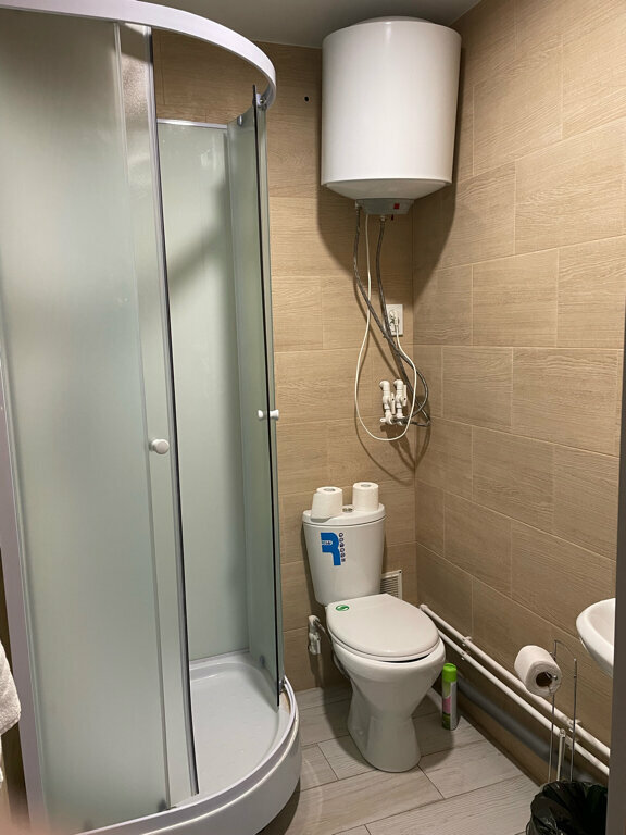 - Плохая организация ванной (мокрый пол из-за отсутствия шторки).