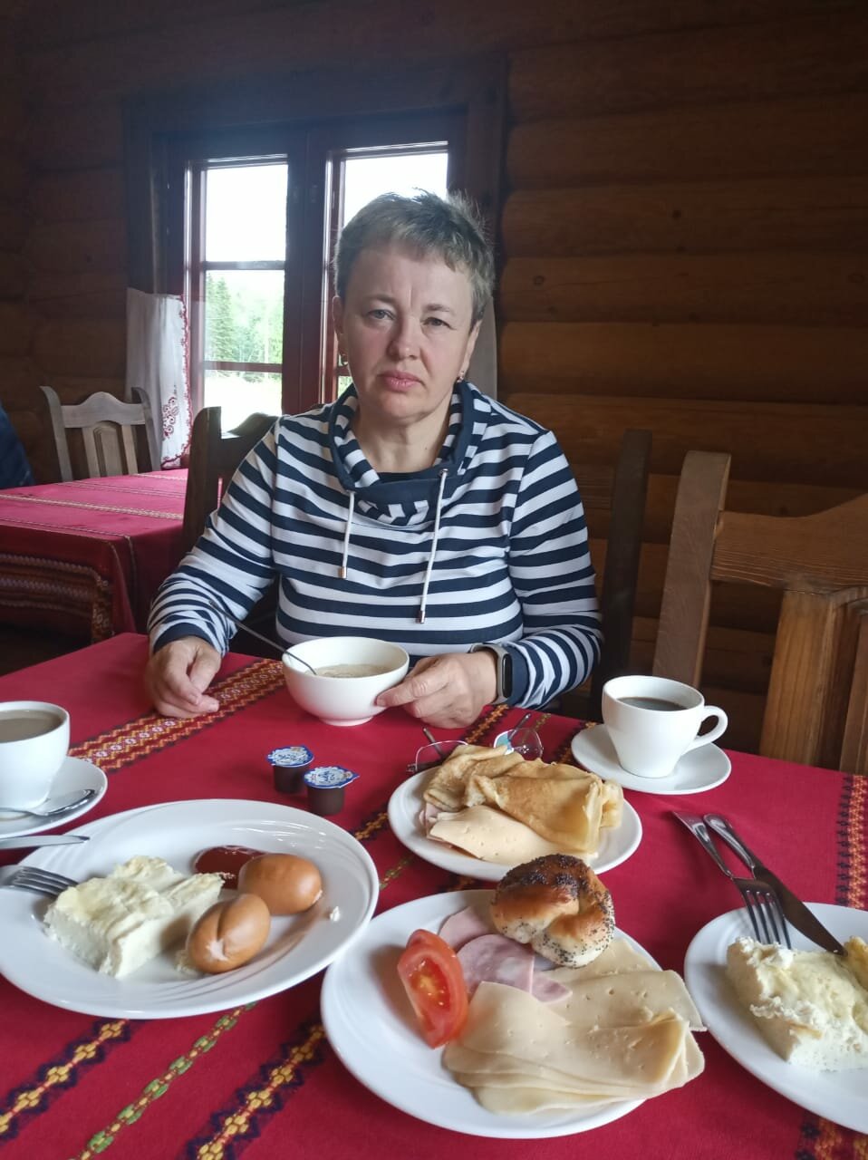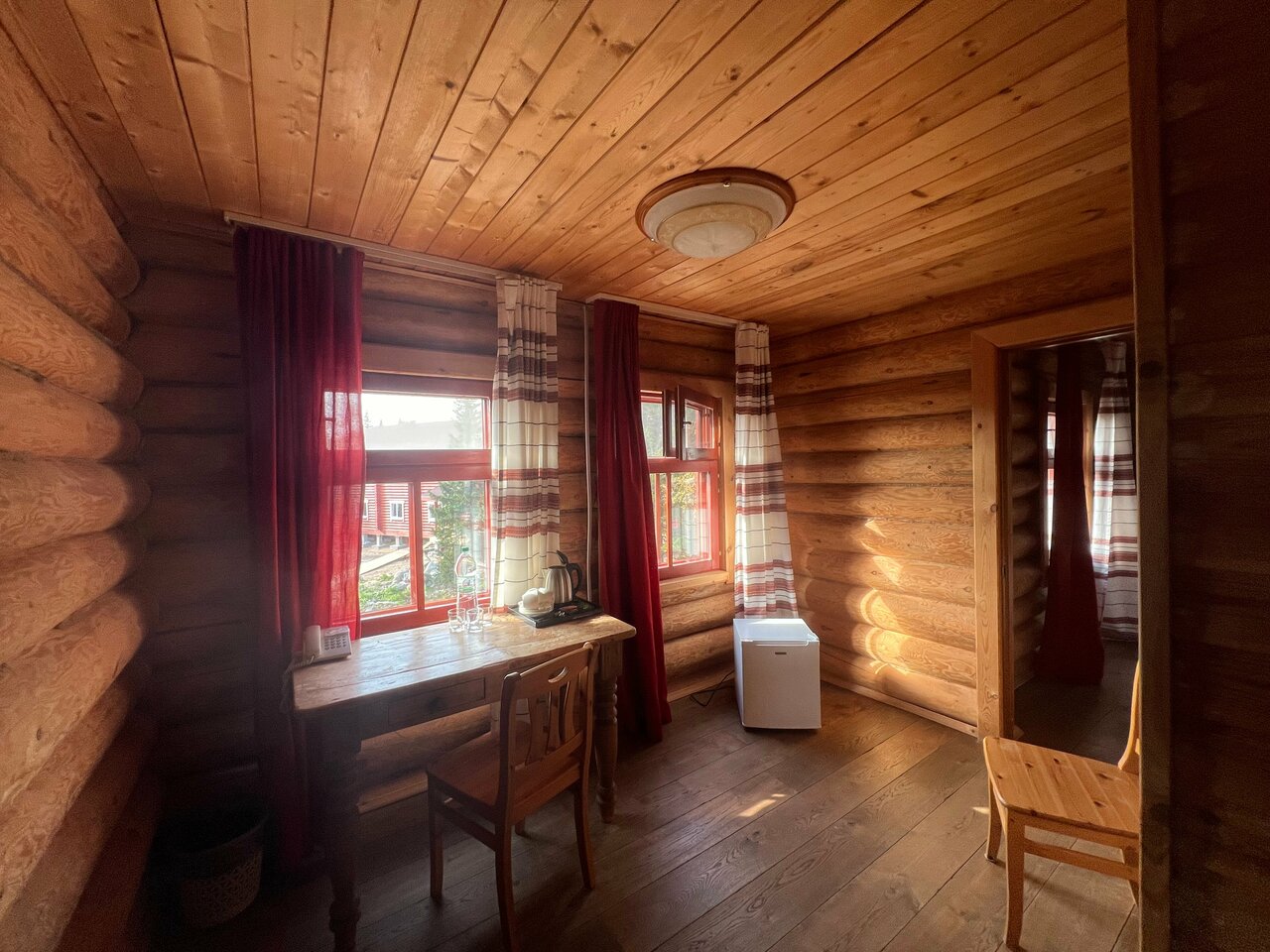 Еда просто супер. Подача, порции ну и вкус. Сами номера хорошие, хотя слышимость тоже хорошая и это деревянное здание. Бревенчатый отель круто.