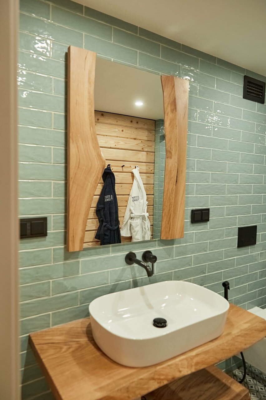 Номер с видом на быструю речку с водными порогами.Дизайнерские интерьеры, качественная современная мебель, продуманные детали.Кровать «Queen size», полутороспальная кровать, терраса с панорамными окнами.