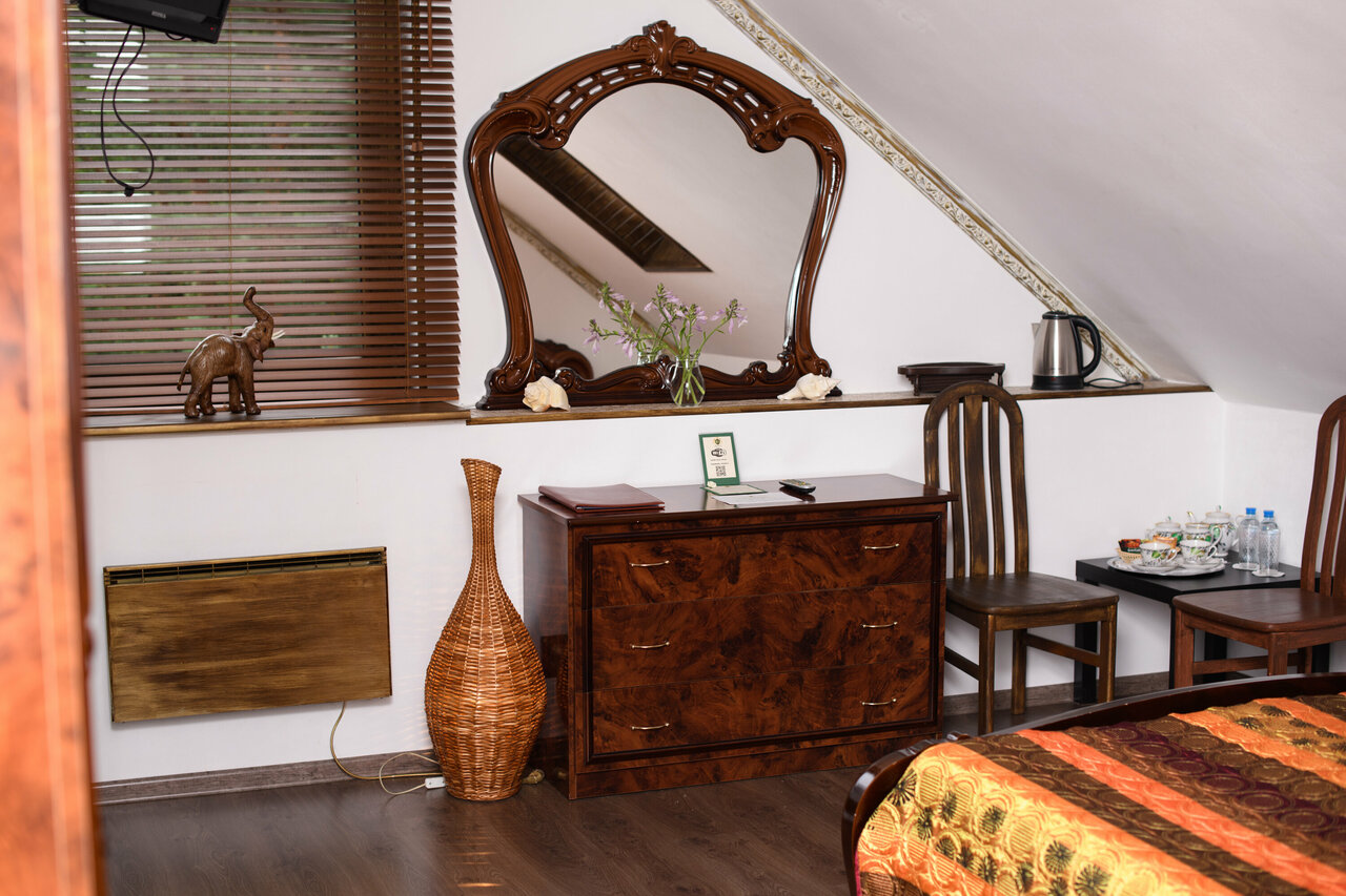 Великолепное место!Красивые ,чистые номера.Радушные хозяева.Номера разные.С камином и сауной.С джакузи и балконом.Я была в номере’Франция’.Чистый,с вензелями и стены оббитые тканью,балкон где можно посидеть и попить кофе,шампанское.Люблю это место.Хочу в следующий раз в номер ‘Венеция'(сауна,камин).