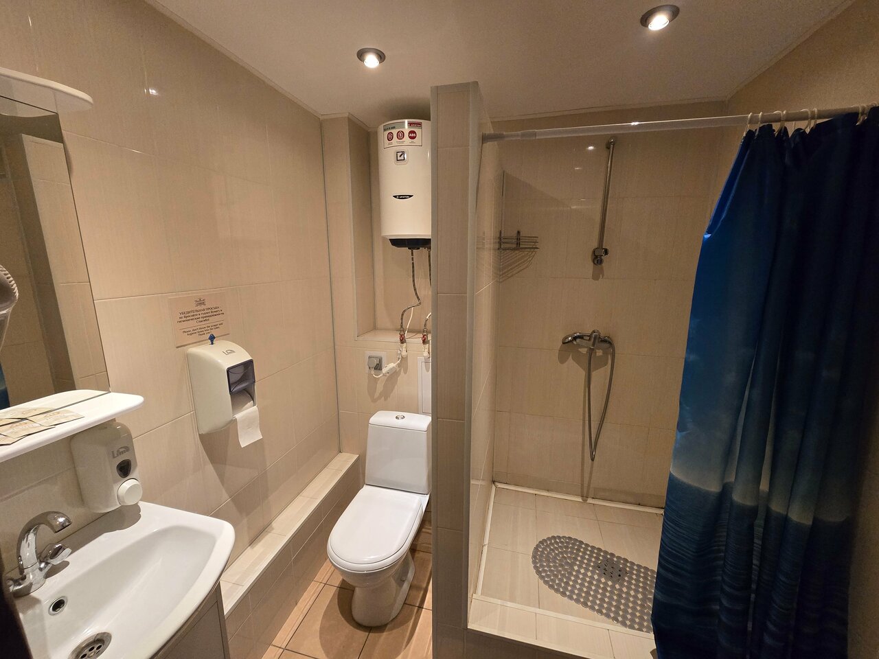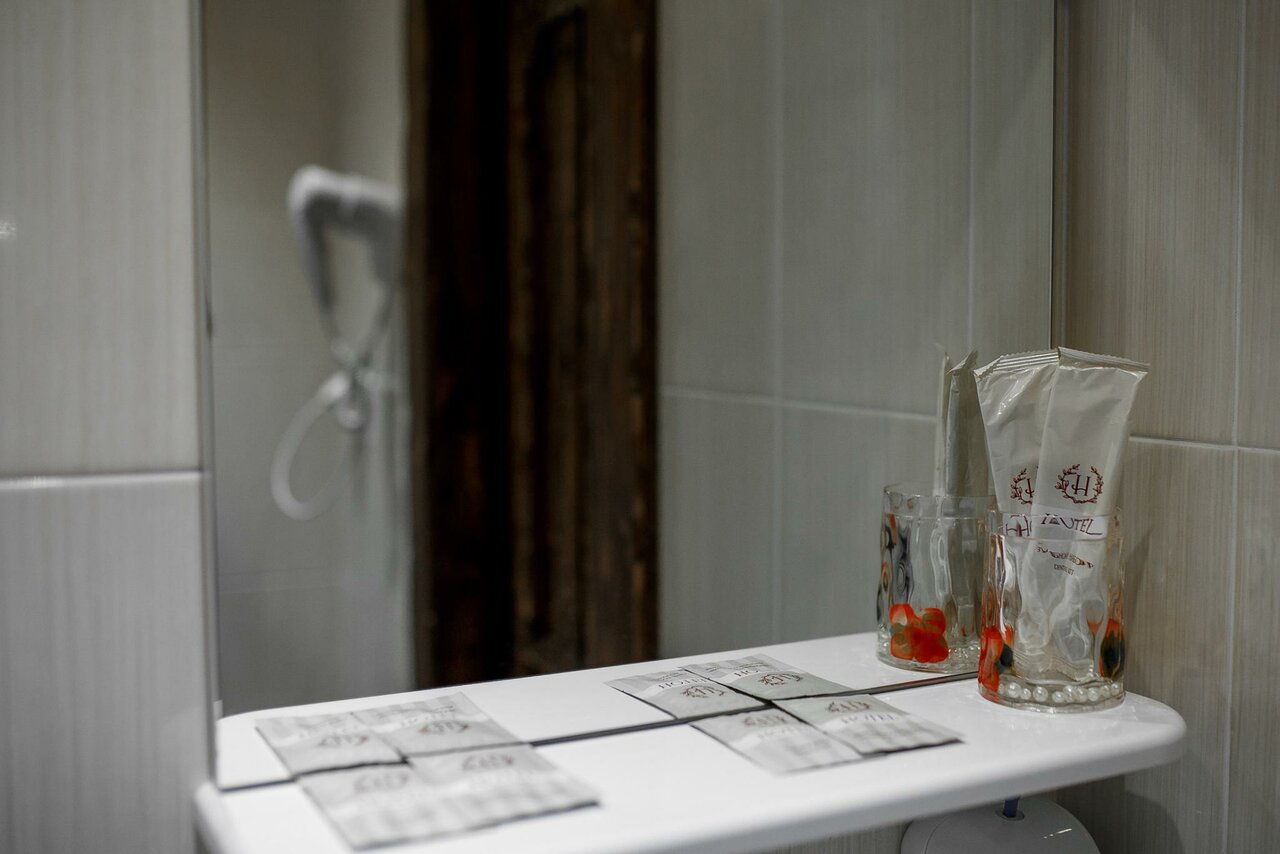 Вежливый персонал, удобная постель, есть тапочки, а самое главное — кулер с водой в номере! Плохое освещение в ванной — нет света над зеркалом, воду надо отрегулировать по температуре, прежде, чем принимать душ или умыться, в углах комнаты пыль.