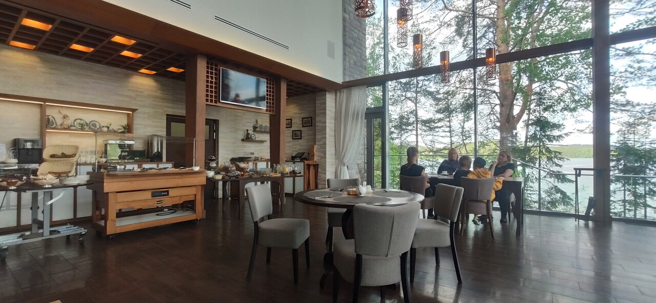 Разочаровывающий и печальный опыт. Давно хотела сюда попасть и: - ужасное обслуживание в ресторане. То забывают принести блюдо, то счет. Ресторан испортил все впечатление от отдыха. Не хотелось лишний раз ходить. Вместо оплаченного шведского стола- континентальный завтрак без части блюд. Это неприемлемо для нас, завтрак растягивался на 50 минут. Никто об этом не предупреждал, в итоге мы везде опоздали - пролежанный матрас, скатываешься в дырку - в номере не работал телефон, а мобильный служба размещения берет через раз -вид не на лес или озеро, как заявлено. А сначала на парковку или чужой дом, и вдалеке озеро и лес:) - вода из поддона душа уходит очень медленно, постоянно стоишь в луже - в мини баре оказались использованные закуски -сложно попасть в спа, закрытые мероприятия Из плюсов хочется отметить замечательных горничных, чистоту их работы.