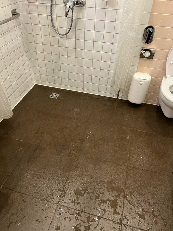 - Медленный слив воды в душе.