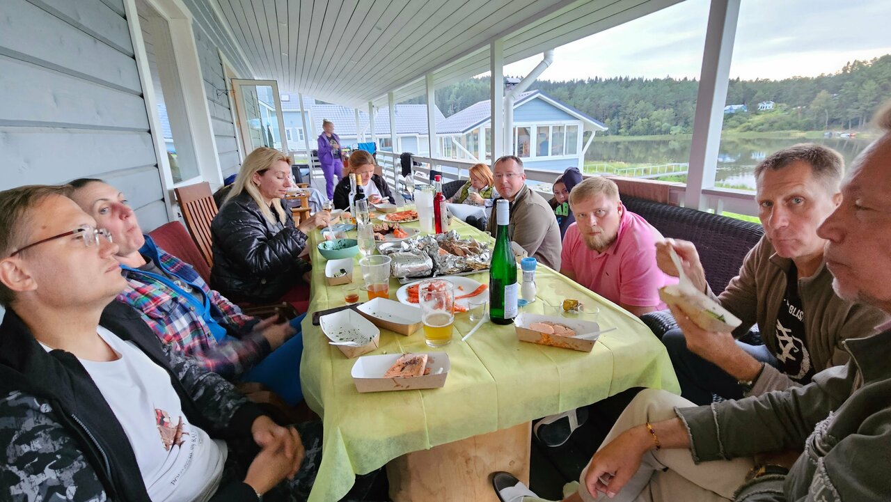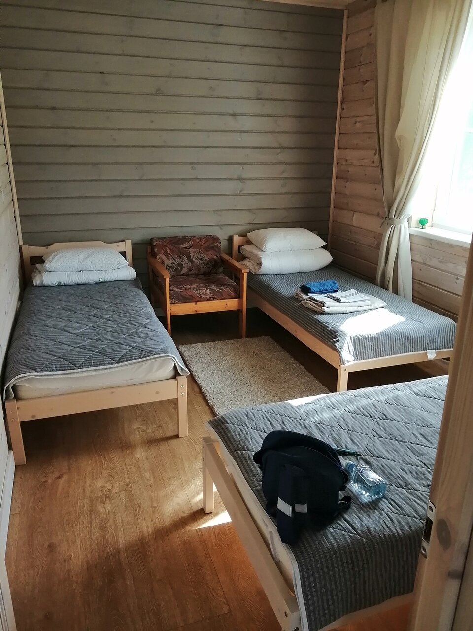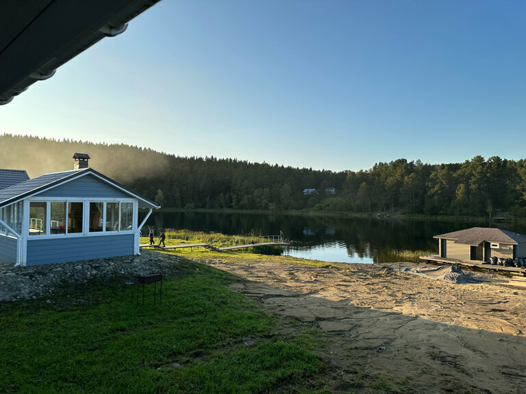 Отдыхали большой компанией. Снимали несколько домиков. Отличная локация на берегу Ладоги, хорошие, чистенькие домики. Все необходимое есть. Удобная мангальная зона. Есть баня и аренда лодок и сапов.