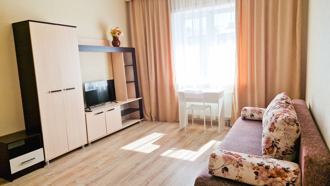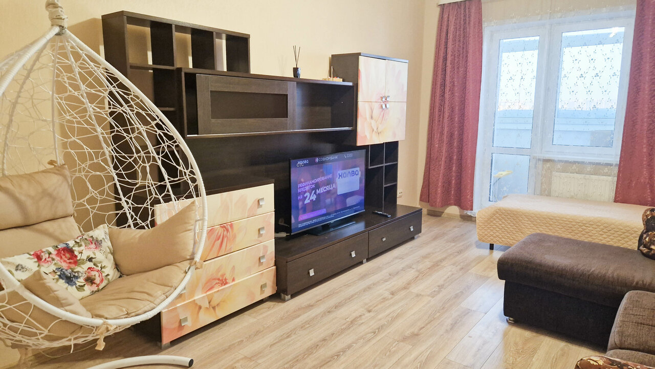 Представляем вашему вниманию уютную 1-комнатную квартиру с большим телевизором в новом доме капитального исполнения.Это отличный вариант для командированных!