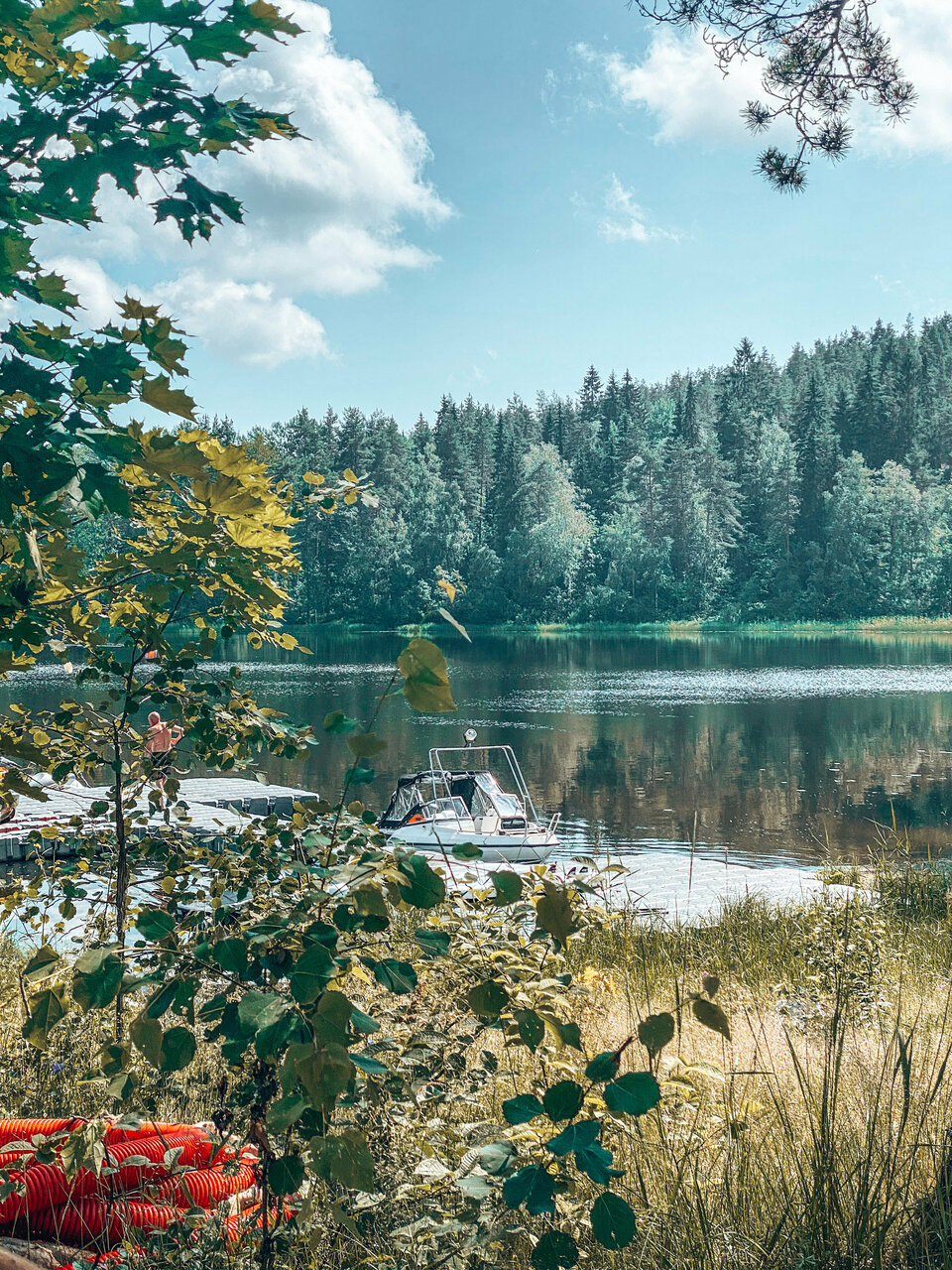 Были в июле 2022 Шикарная база, огромное количество развлечений, можно гулять по самой базе, так как она огромная, как и в лесу, наша прогулка по тропинке заняла 3 часа. Современные приятные домики в едином дизайне. Тропа: уложена деревянной щепкой, что упрощяет ходьбу, маршрут несложный, так что подойдёт для всех возрастов Весь лес покрыт поляна и черники и брусники, мы так же нашли лисички, которые с удовольствием пожарили с яйцом на обед) Вначале вы подниметесь на верх острова, где можно полюбоваться видом на воду и отдохнуть на лавочках. Дальше Тропа уходит в лес Развлечения:гидроцикл, катамаран, катера весельные лодки, квадрациклы, бесплатные удочки, большая детская и спортивная площадки, пляж с лежаками, видели площадку для пейнтбола Спа: ОГРОМНЫЙ бассейн с гидромассаж ем, хамам, сауна, большая комната отдыха и все это в невероятно красивом дизайне.