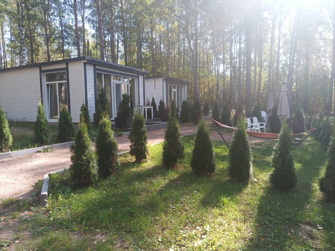 Прекрасное место ! Отдыхали втроём с подругами в начале лета. Отдых был просто чудесный! Уютные просторные номера со всем необходимым вплоть до самых маленьких деталей, хорошая зона барбекю, зелёная красивая территория, отзывчивый и вежливый персонал, можно воспользоваться сауной дополнительно, шезлонгами, качелями, взять велосипеды и лодки напрокат. На территории есть своё прекрасное кафе, где очень вкусно готовят! Даже от Комаров и клещей территорию обрабатывают! Вообщем все супер! приезжайте обязательно сюда за спокойным релаксационным отдыхом на природе! Отдельное спасибо администратору Дарье за внимательность и дружелюбное отношение к клиентам