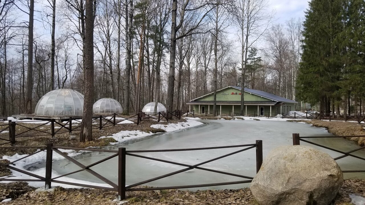 Территория на базе ухоженная. На завтрак очень вкусная каша! Останавливались на 2 дня в вигваме, минус был, что в телевизоре только 2канала показывало, интернет на нем не грузил. И в самом домике не продумана хорошая вентиляция , проветривание, из-за этого ночью было душно. До озеро минут 15-20 хотьбы , немного опасно, т.к второй раз , когда пошли, навстречу вылетела овчарка , слава богу ее спугнули. Так же хотели взять лодку на прокат, но 1000р за старую весельную лодку-перебор А так в целом все понравилось, персонал доброжелательный:)