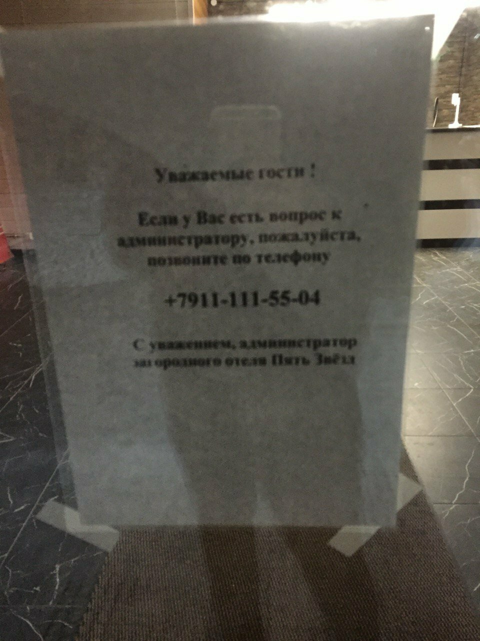 - Все телефоны отеля: +7 (911) 957-53-32 Отдел бронирования | +7 (911) 111-55-04 Ресепшн
