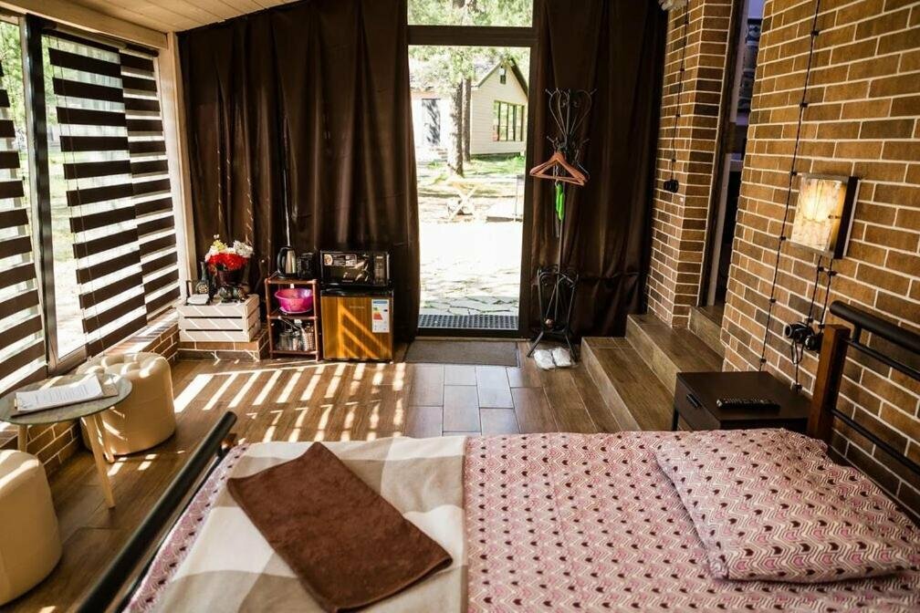 Отличное место для отдыха! Красота неимоверная! Остановились с дочкой на одну ночь. Сняли номер Вишня, вышел с завтраком 3400. В номере есть всё, тапочки, зубные щетки одноразовые запакованные, плитка, чайник, микроволновка, фен, отличный санузел. На самой базе просторно, есть закреплённое место для уличного шашлыка и посиделок. Единственное есть небольшие косяки в виде севших батареек в пульте, немного уставших пододеяльников и ламината, но это всё ерунда, думаю хозяева уже знают об этом и устранят. Сюда надо ехать не на одну ночь, что собственно и сделаем в следующее лето!