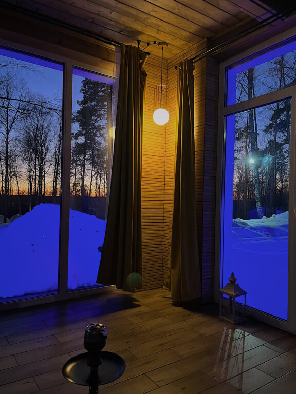 Очень классное место! Ездили зимой, после нового года 4 взрослых и 2 детей. Сугробы по пояс, набегались по лесу и накатались на ватрушках по лесу. Классный теплый дом, с хорошей отделкой. Завтрак очень сытный и вкусный можно заказать чтобы принесли в дом. Впервые встречаю место, где можно просто так взять кальян и курить его в доме. Красиво, недорого, качественно. Спасибо за отдых и гостеприимство, нам все понравилось!
