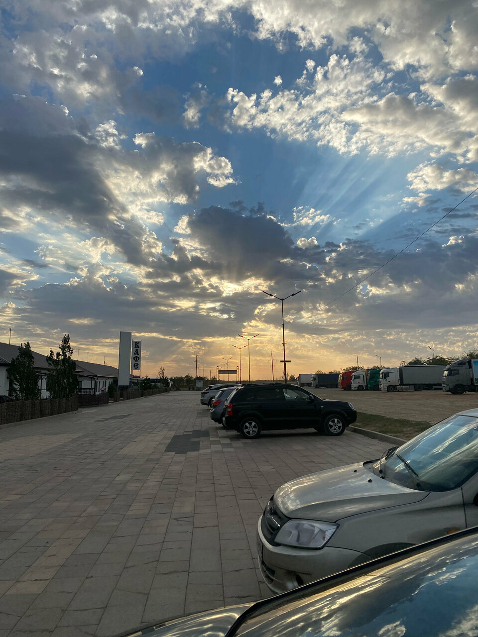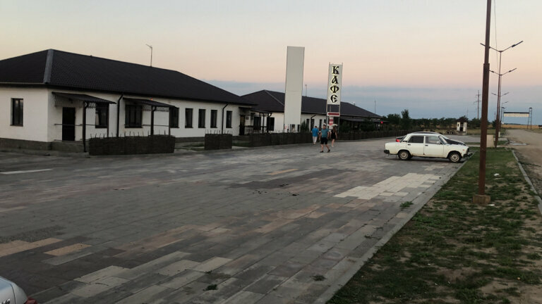 Хорошее кафе очень вкусно готовят! Отличный душ стоянка хорошая большая! Маленько ее подравнять нужно грейдер пустить а так всё отлично рекомендую! Вода хорошая чистая пригодна для питья! Всё хорошо всё отлично!