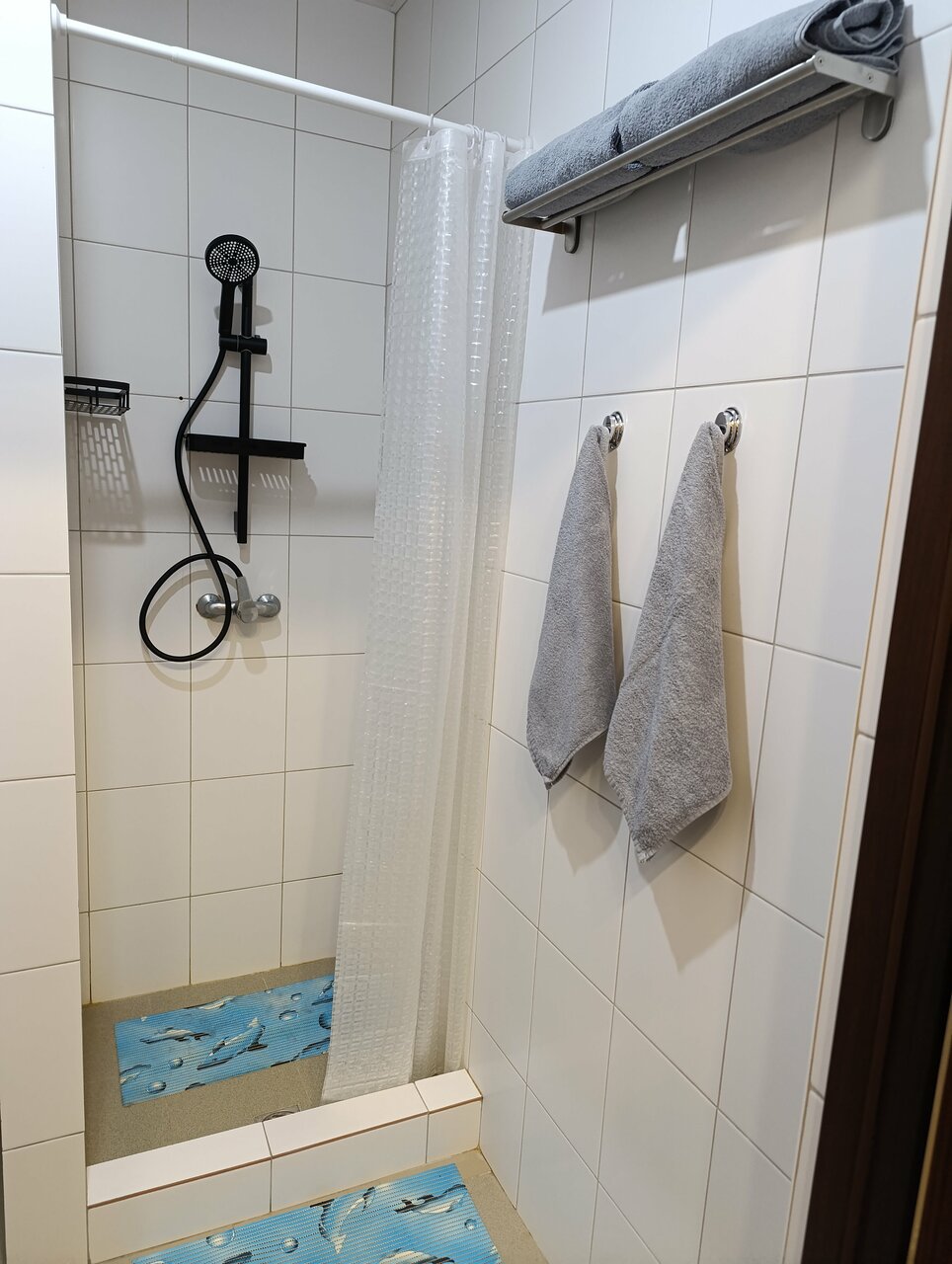 Номер оснащен 2 раздельными односпальными кроватями и одной 2 местной двухъярусной кроватью. Кондиционер, телевизор, душ, туалет, душевые принадлежности.