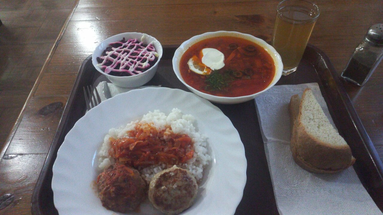 - Вкусная еда (в кафе/столовой).