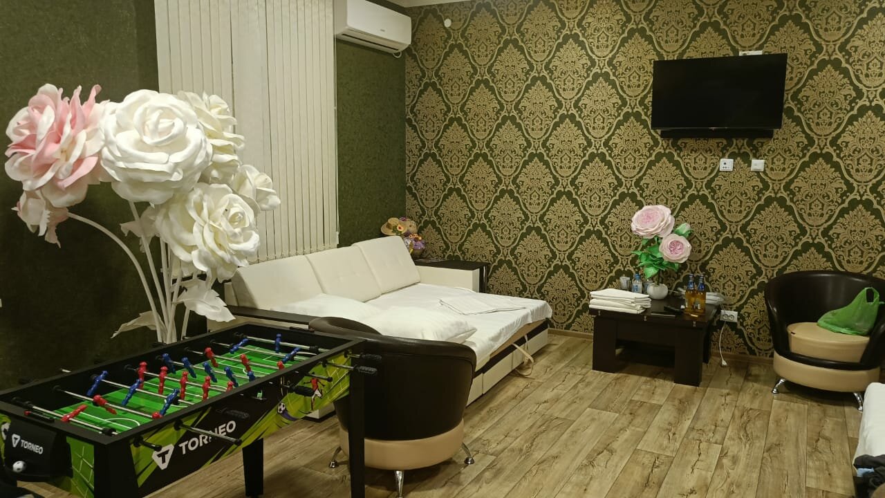 Остановились на ночь, все отлично,позвонили в дороге в 21*00, Наталья сразу ответила, встретился нас ночью, все показала, номер на 4, нас трое, все удобства в номере,.Дочка в восторге наигрались в теннис, футбол настольный. Утром позавтракали вкусно, меню разнообразное. Спасибо, нам все понравилось.