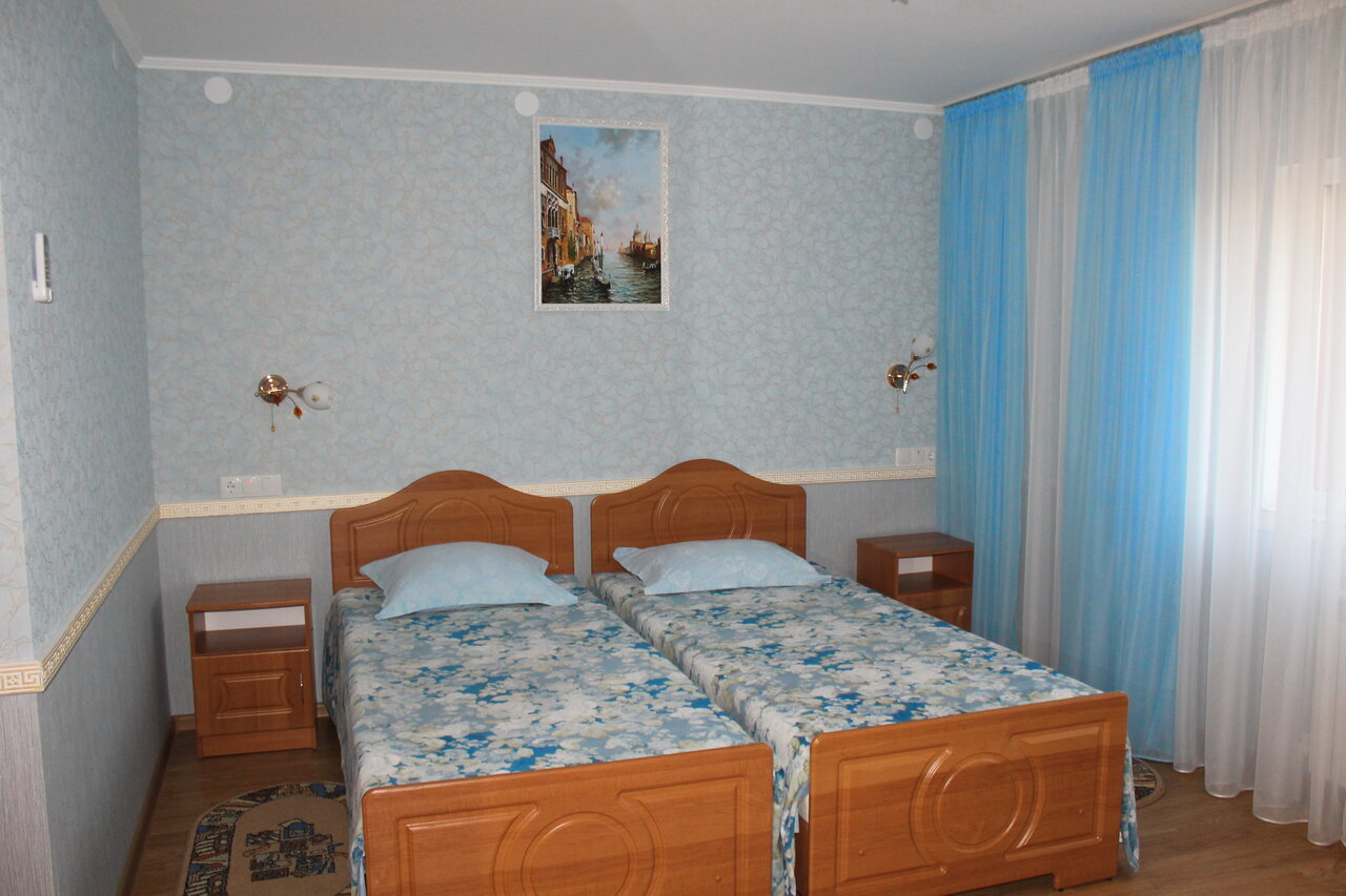 Большой двухместный номер с двумя отдельными кроватями, телевизором, гардеробом, сейфом для личных вещей.