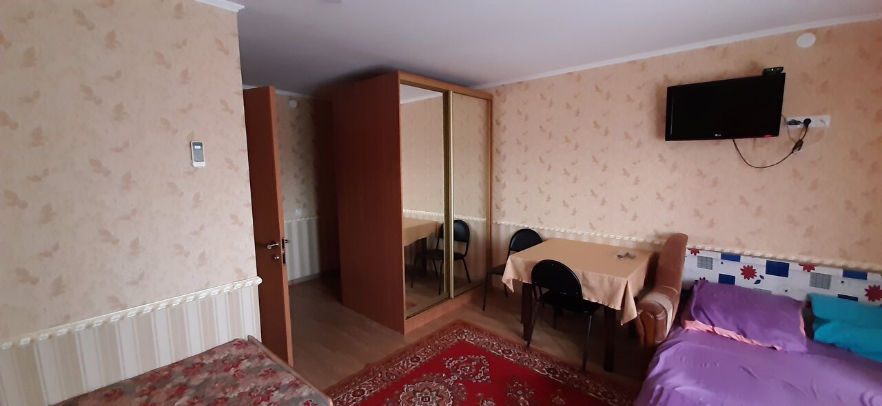 Ехали с двумя детьми с Крыма, уже ночью искали жильё. По отзывам позвонили сюда. Встречал приятный мужчина. В номере чисто,уютно,для всех полотенца висели. Комната просторная с душем и туалетом,есть кондиционер,телевизор,чайник,холодильник,2 односпальные кровати и диван раскладной на 2 места.Отдохнули ночь с комфортом по цене в 2000руб.Спасибо огромное.