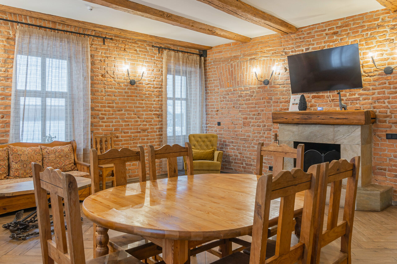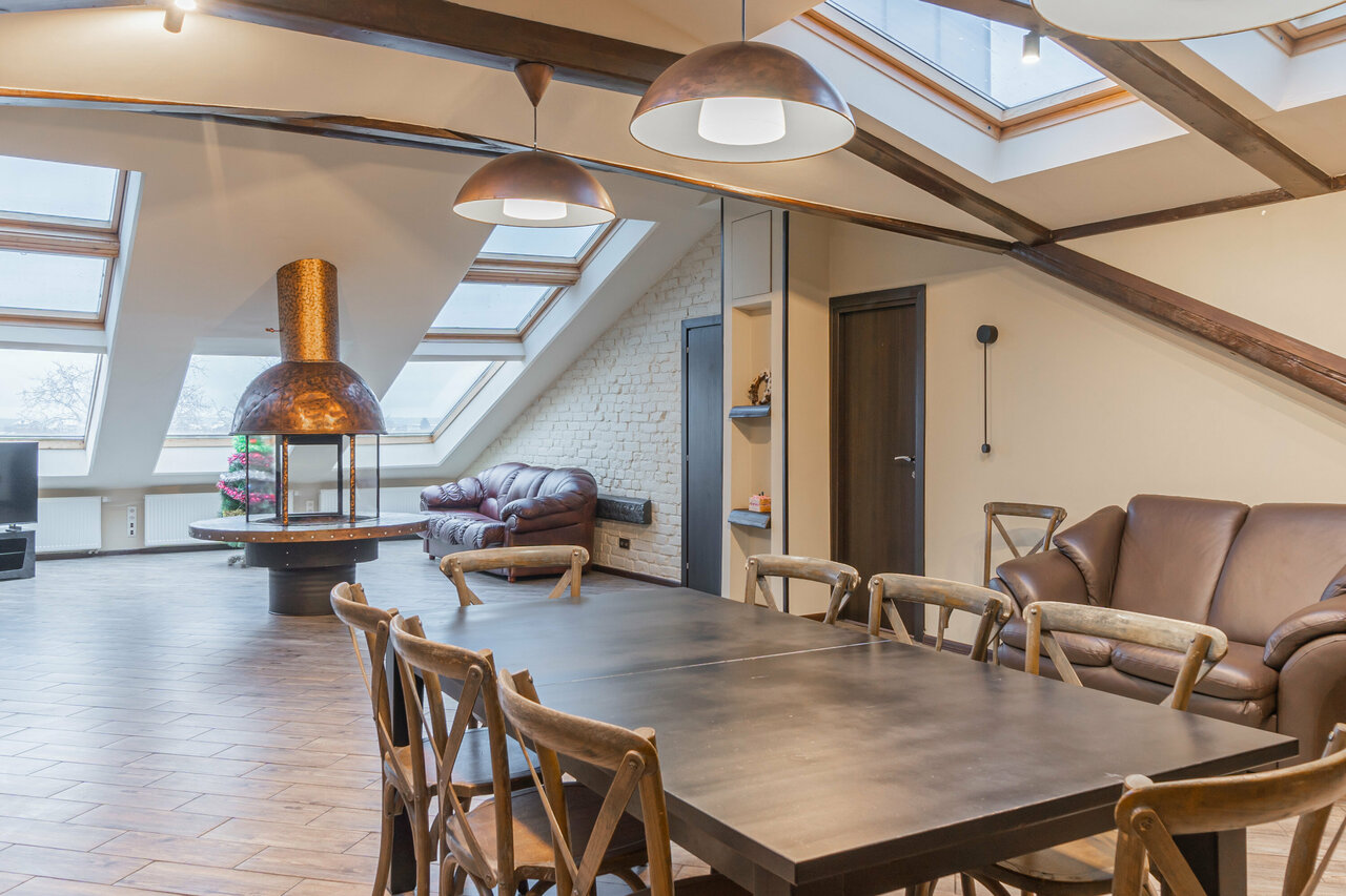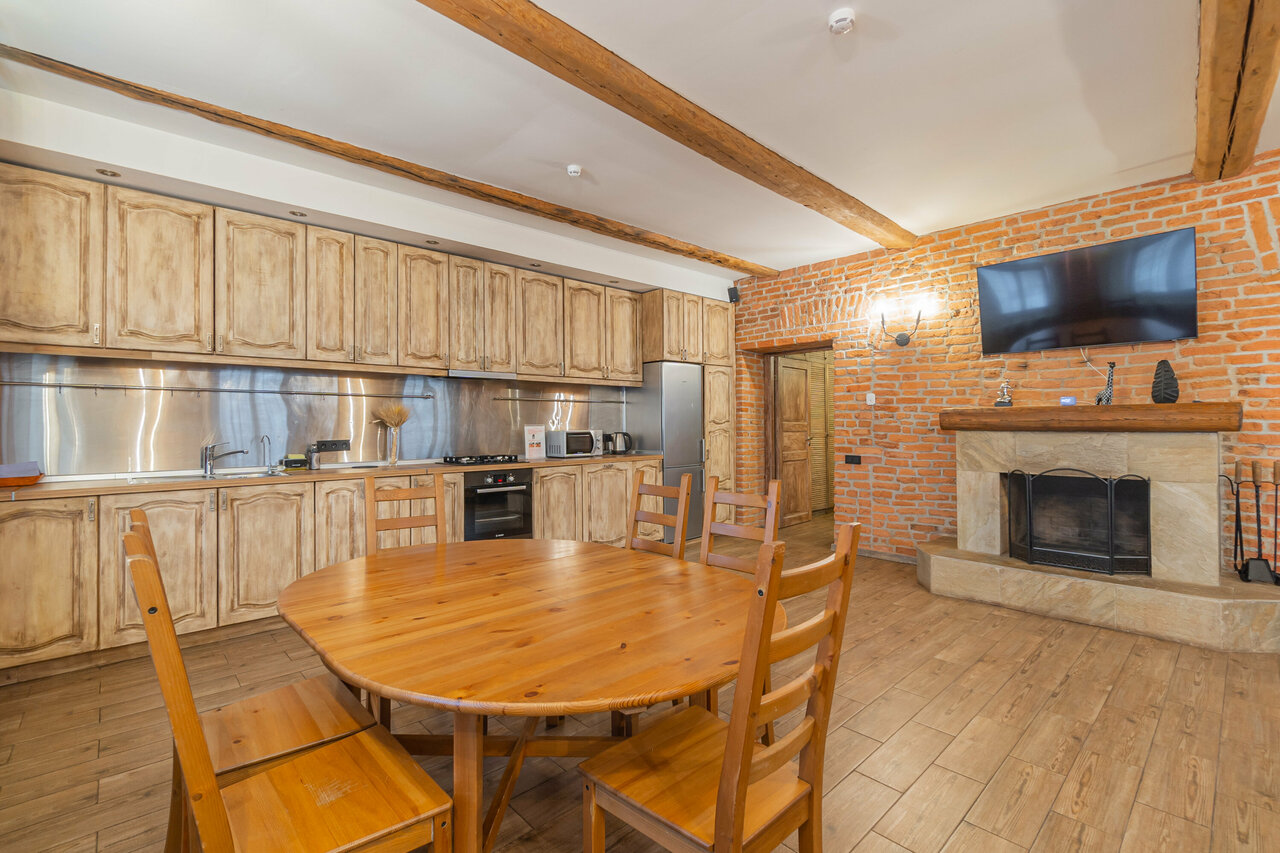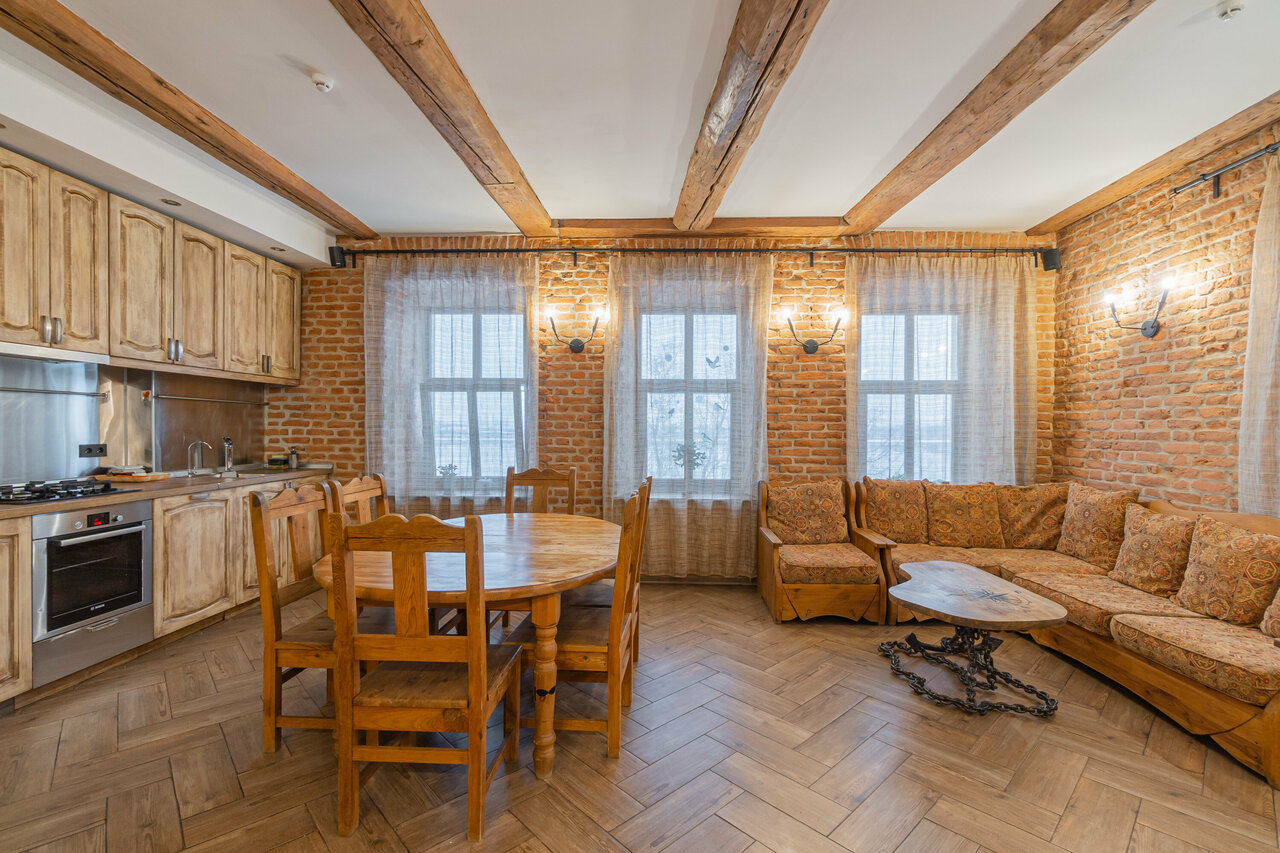 - Полная оснащённость апартаментов (посудомоечная и стиральная машины, духовка, камин).