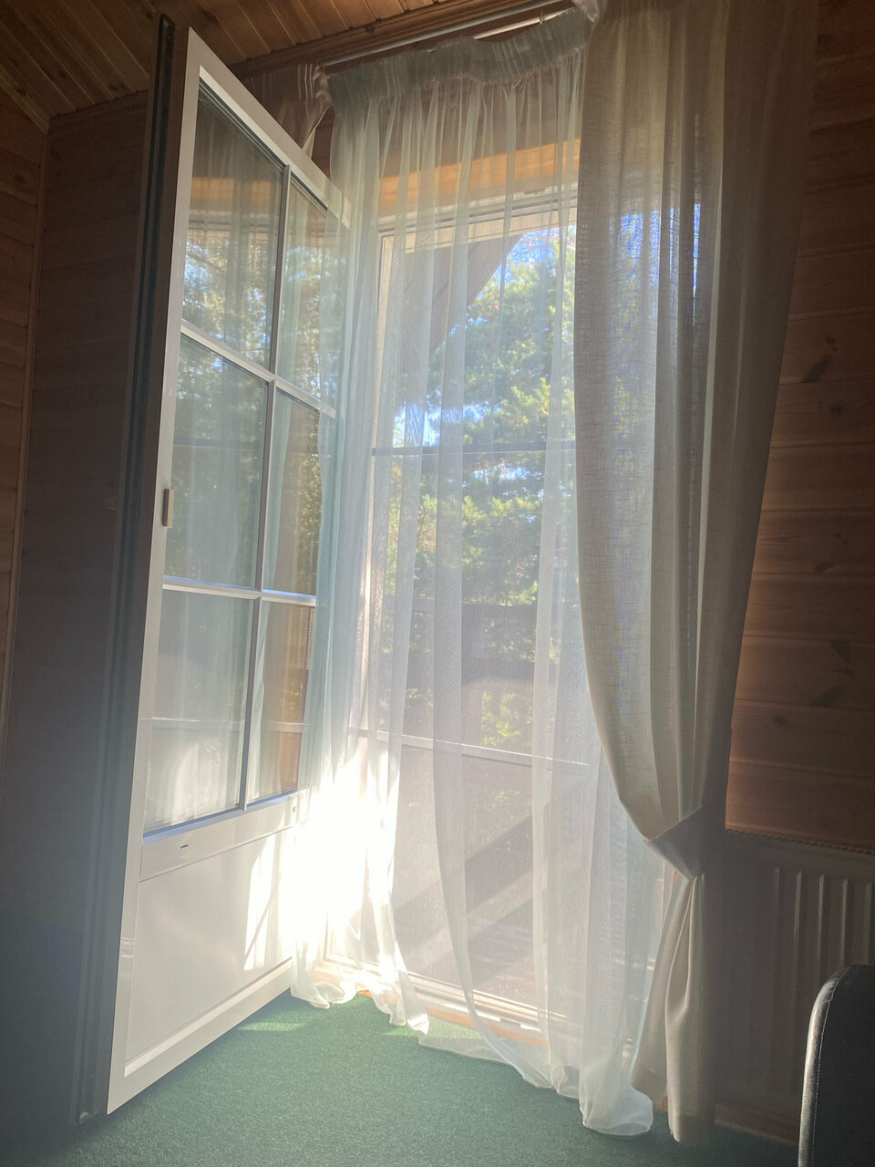 Обслуживание хорошее, персонал приветливый, еда скромная, но питательная, овощи выращивают сами, видела поле картошки, теплицы и грядки, можно на заказ что-то приготовить, много вариантов чая. Вода, как говорят, из собственной скважины. Расположена на берегу реки, можно позавтракать на трассе с видом на реку и Ладожское озеро. Завтрак включён, но не шведский стол. Если есть противопоказания или предпочтения лучше обсудить это заранее. Чистота на уровне, есть 2х ярусные номера причём не сильно дороже . Есть сауна и хамам, вполне приличные. Но лучше заказывать заранее, чтобы сауна успела прогреться. И в ней нет туалета. Через мост есть экотропа на берег озера, очень живописно.