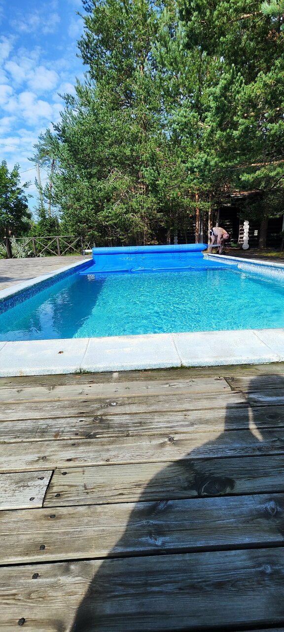 Это божественное место с бассейном под открытым небом с тёплой водой, баней по чёрному и сауной. Внутри дома настоящая дровяная печь, а сам дом современный со всеми удобствами. До Ладожского озера хотьбы минут 5. Отличное место!!!