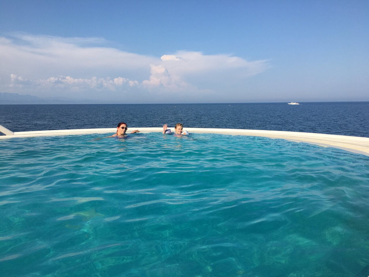 Отличное расположение. Бассейн прямо на берегу моря. Не очень многолюдно