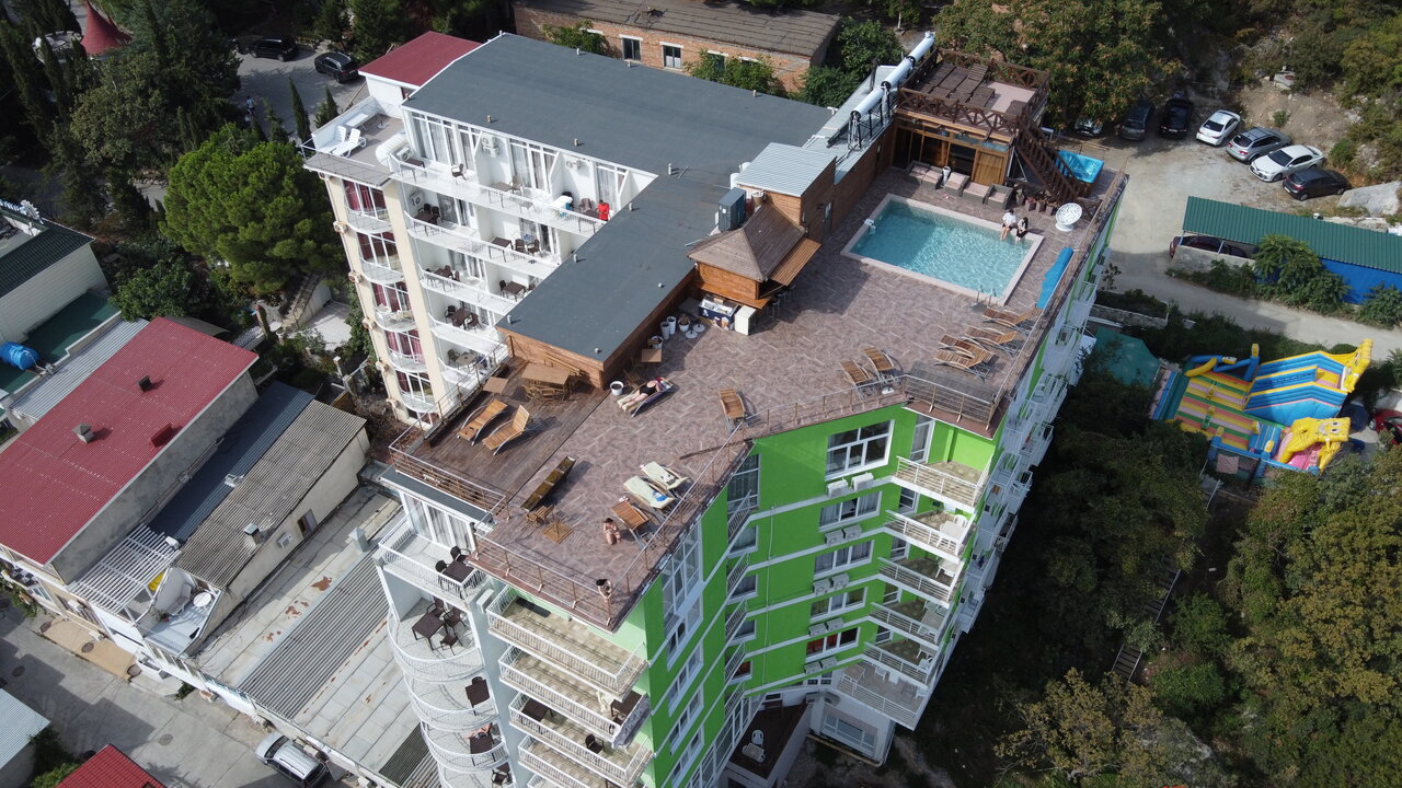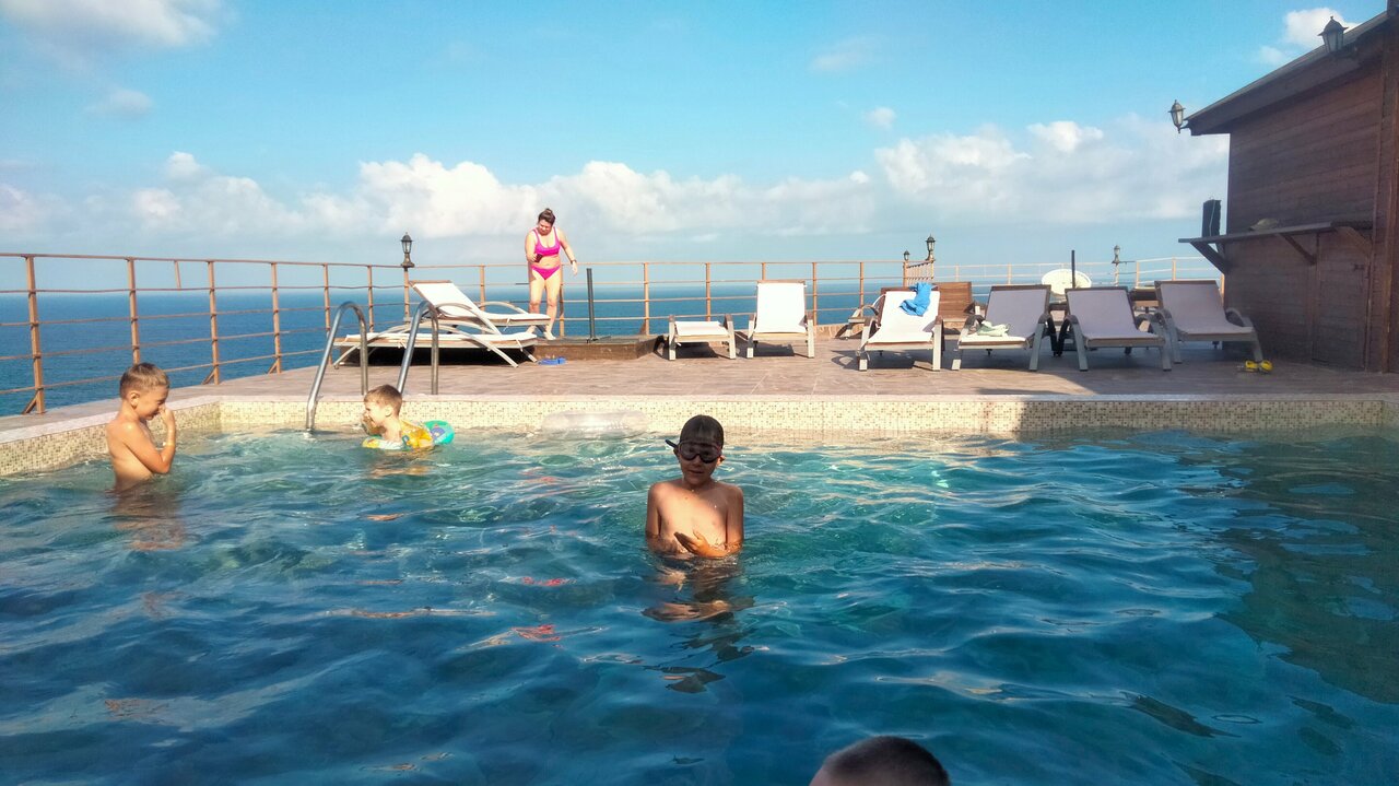 Хороший семейный отель. Неплохой персонал. Номера небольшие, но те что выходят окнами на море, в принципе гуд. На крыше стоят лежаки и небольшой бассейн для детей, но главное на ней — прекрасный вид на море. Есть свои лежаки на местном пляже внизу. Само месторасположение — это небольшой приморский посёлок со своими плюсами и минусами) В принципе нам понравилось. Для Крыма оптимальное соотношение цена/качество. Помогает и действующий сейчас кэш-бек по карте Мир)).