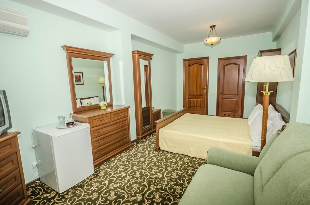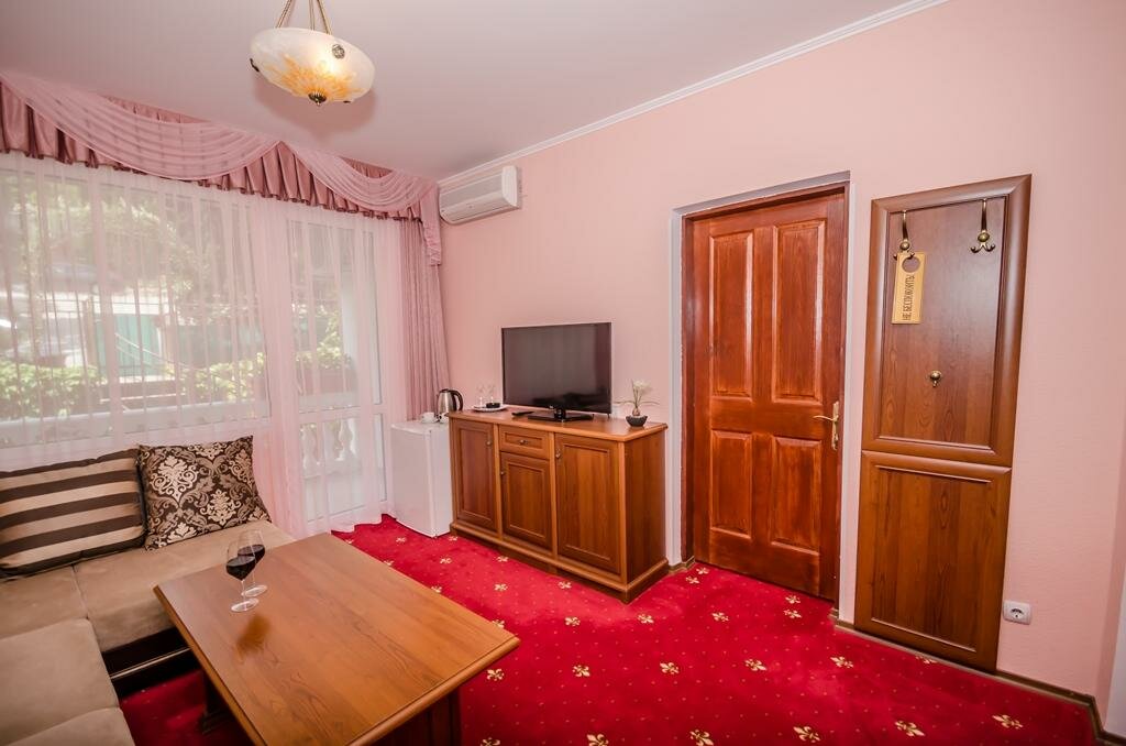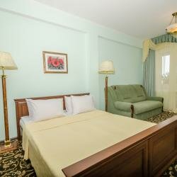 Двухкомнатный номер. Площадь номера составляет 35 кв.м.Для комфортного отдыха вдвоем номер располагает всем необходимым. Это балкон, кондиционер для создания прохлады, полный пакет телеканалов. Каждый день проходит уборка. Смена постельного белья...