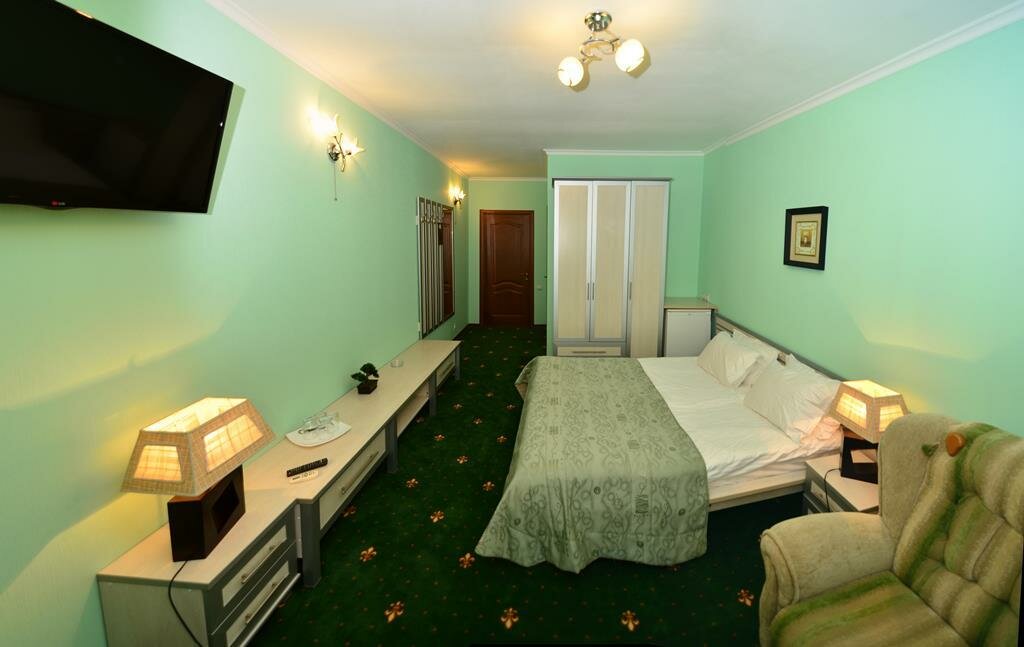 Однокомнатный номер площадью 16 кв. м. В номере есть вся необходимая мебель для комфортного отдыха.