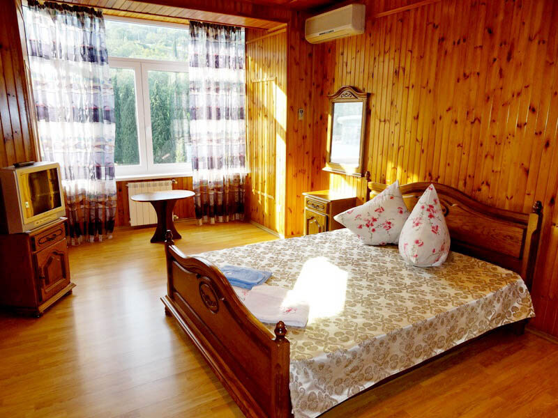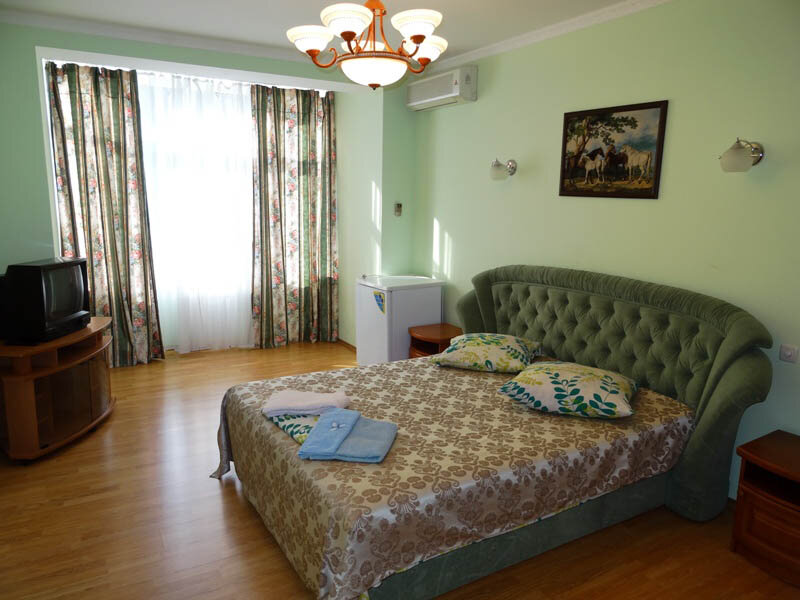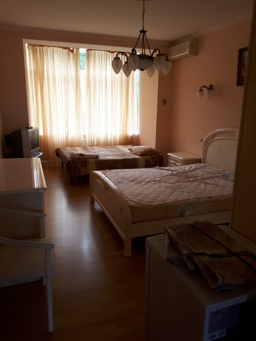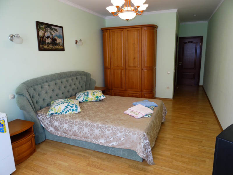 Вместимость 2-4 человек: в номере есть двух местная кровать, диван, двумя тумбами, большим шифоньером, телевизором, а также современным холодильником и трюмо. Имеется кондиционер и шикарный балкон.Доп. место + 500 рублей