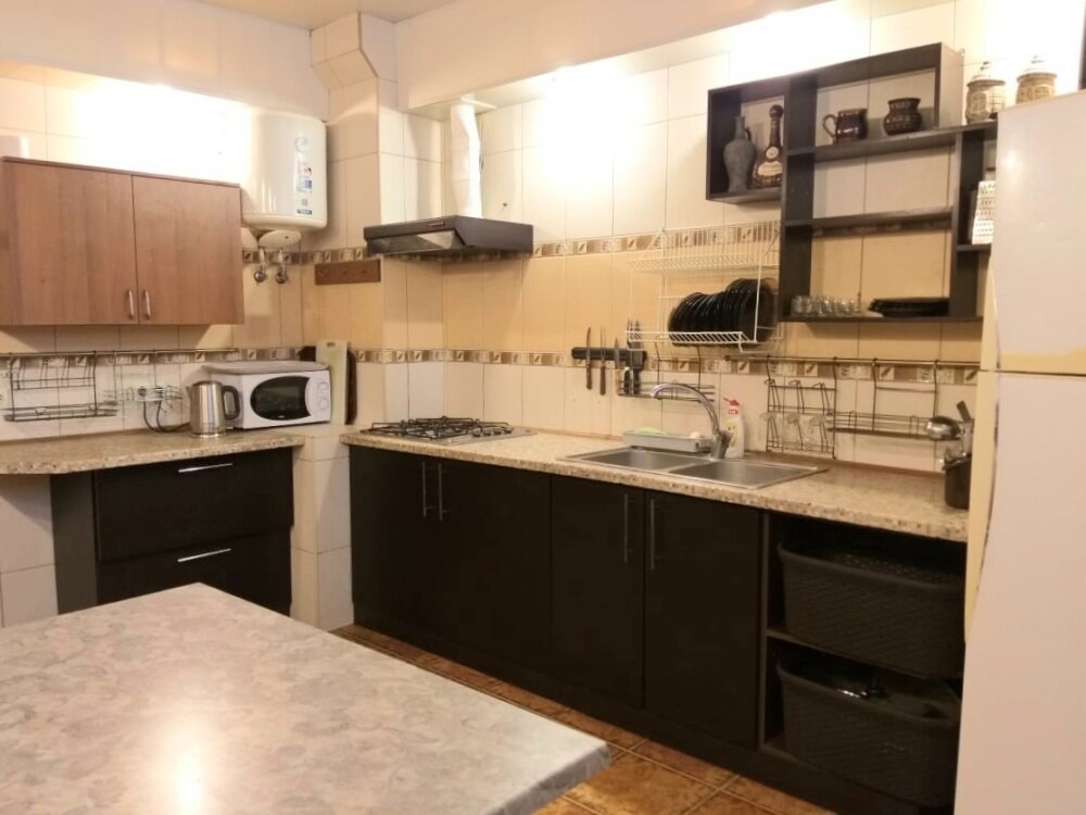 Просторные однокомнатные апартаменты 2022 года постройки, отлично подойдут для 3-4 гостей. В номере двуспальная кровать и диван. Ванна или душевая кабина. Стиральная машина. Есть кухонная зона с варочной поверхностью, холодильником, микроволновой печ