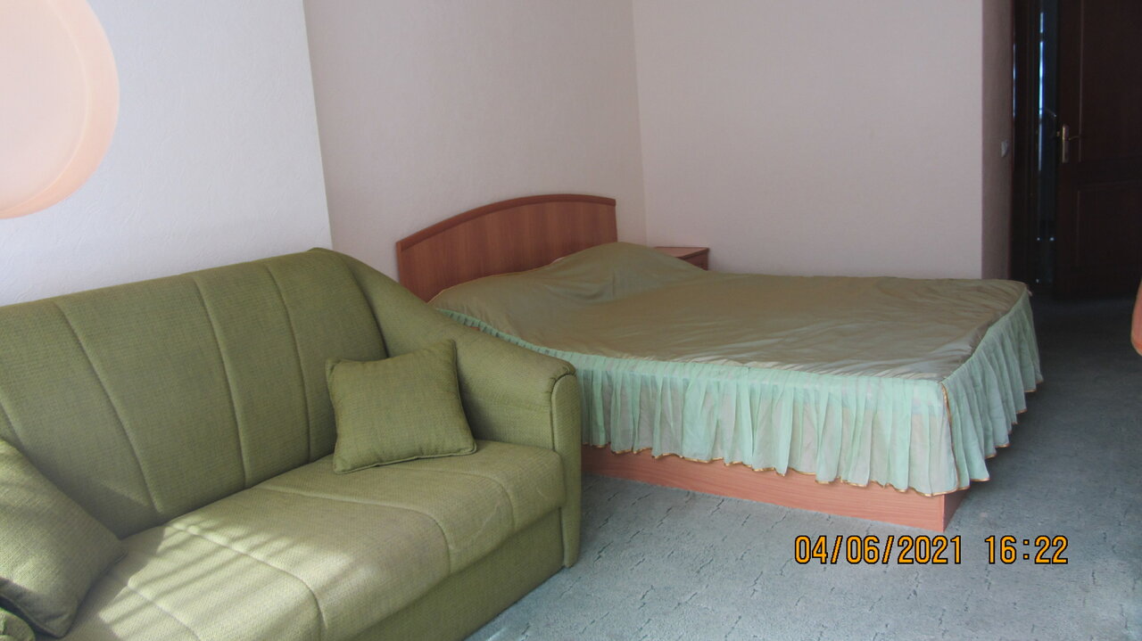 Комфортабельный номер, рассчитанный на троих человек: одна двуспальная кровать + доп место на фальш-этаже. Свой сан. ухел: душ, туалет, раковина. В номере имеется: холодильник, кондиционер, телевизор, шкаф.
