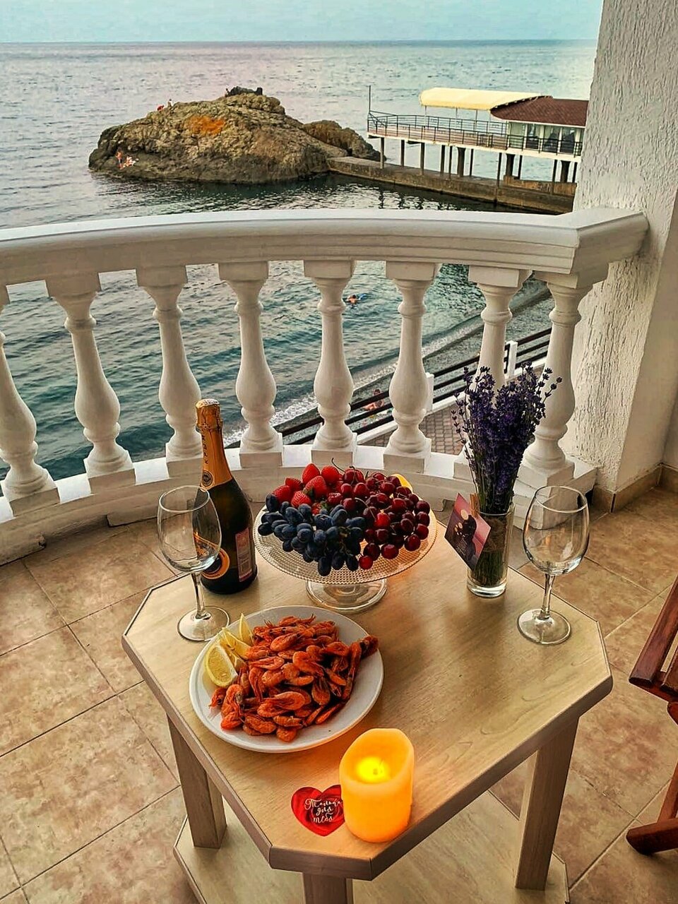 - Романтичная атмосфера (качелька на балконе, вид на море).