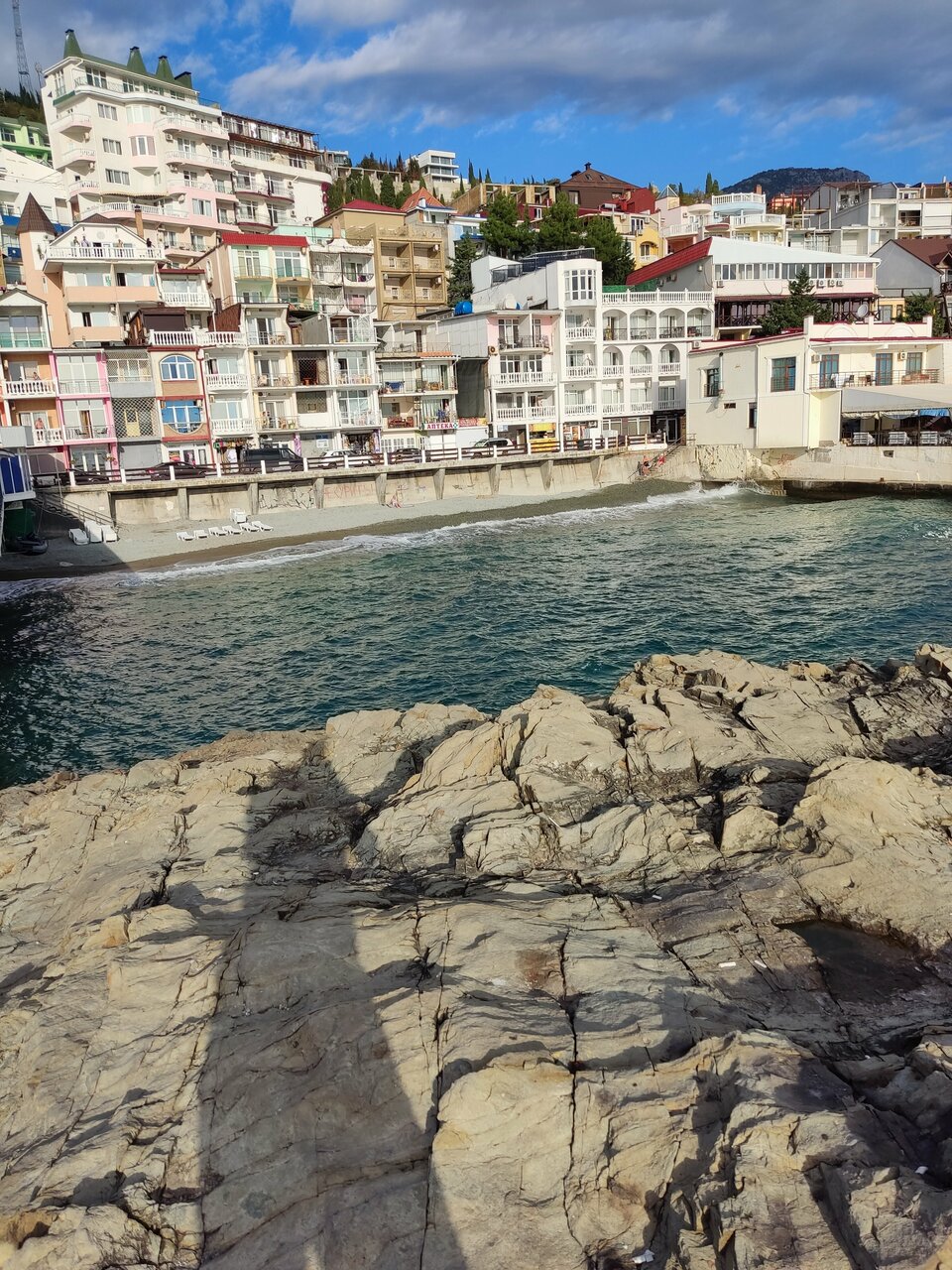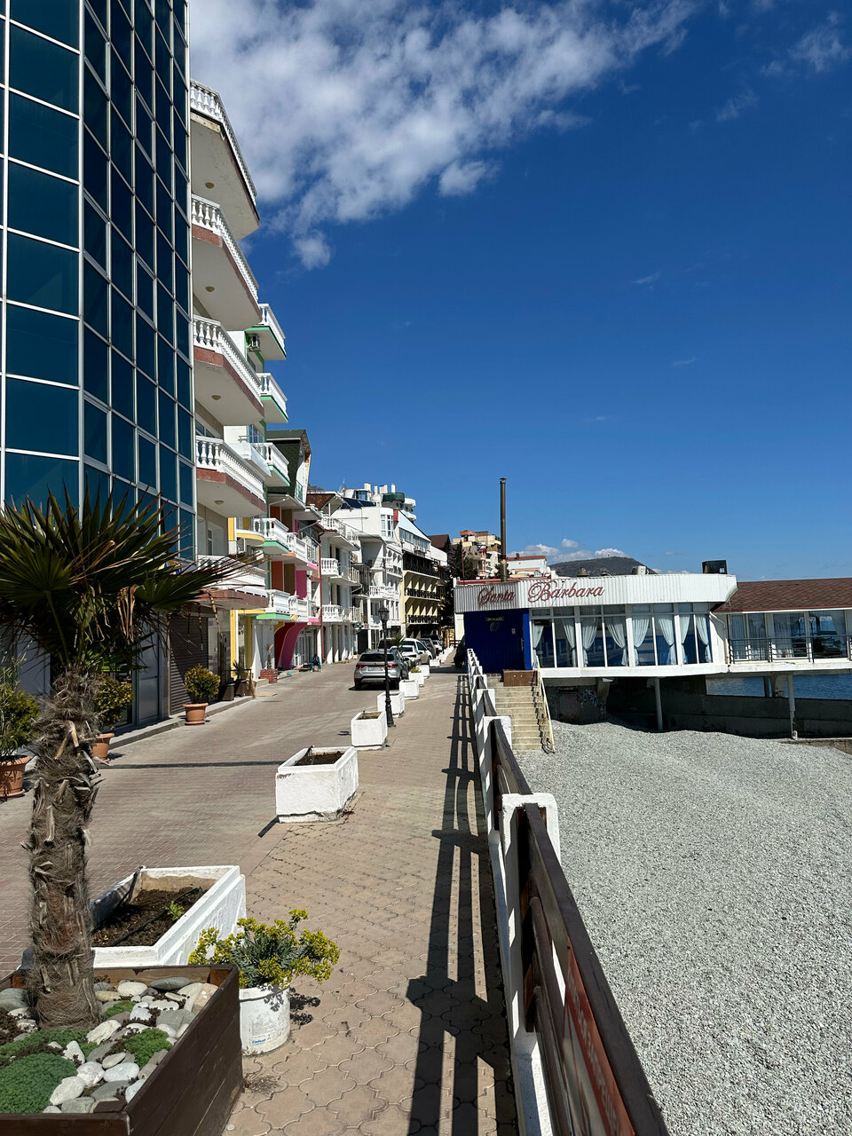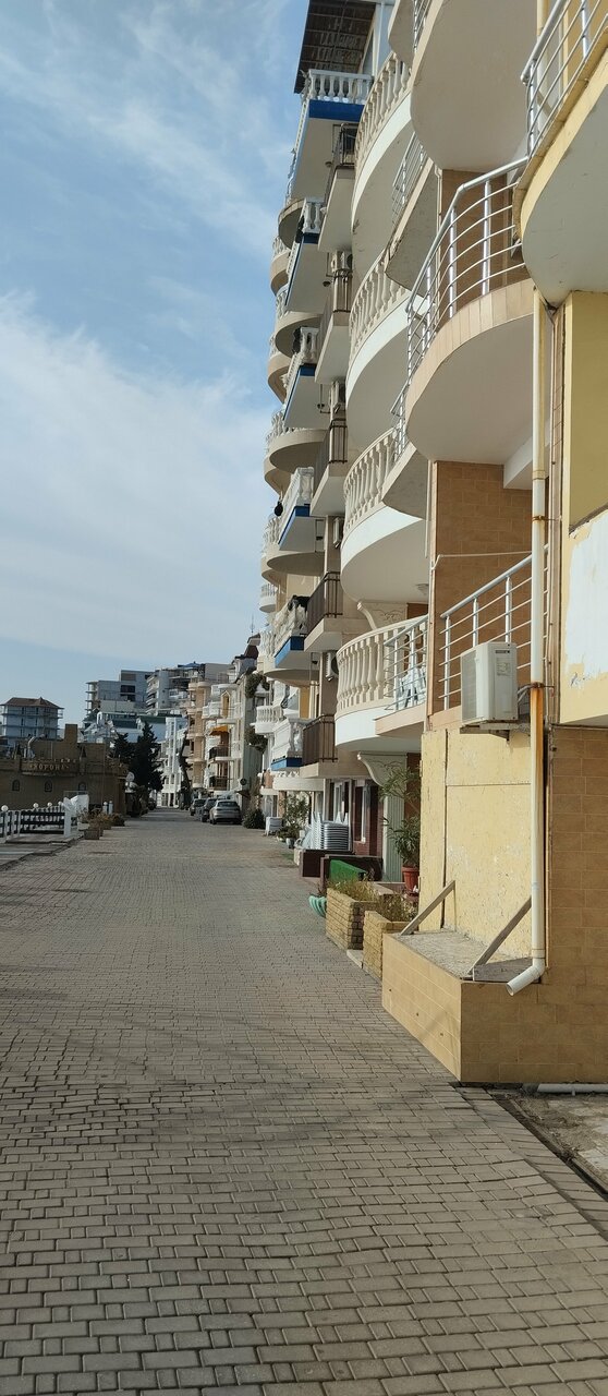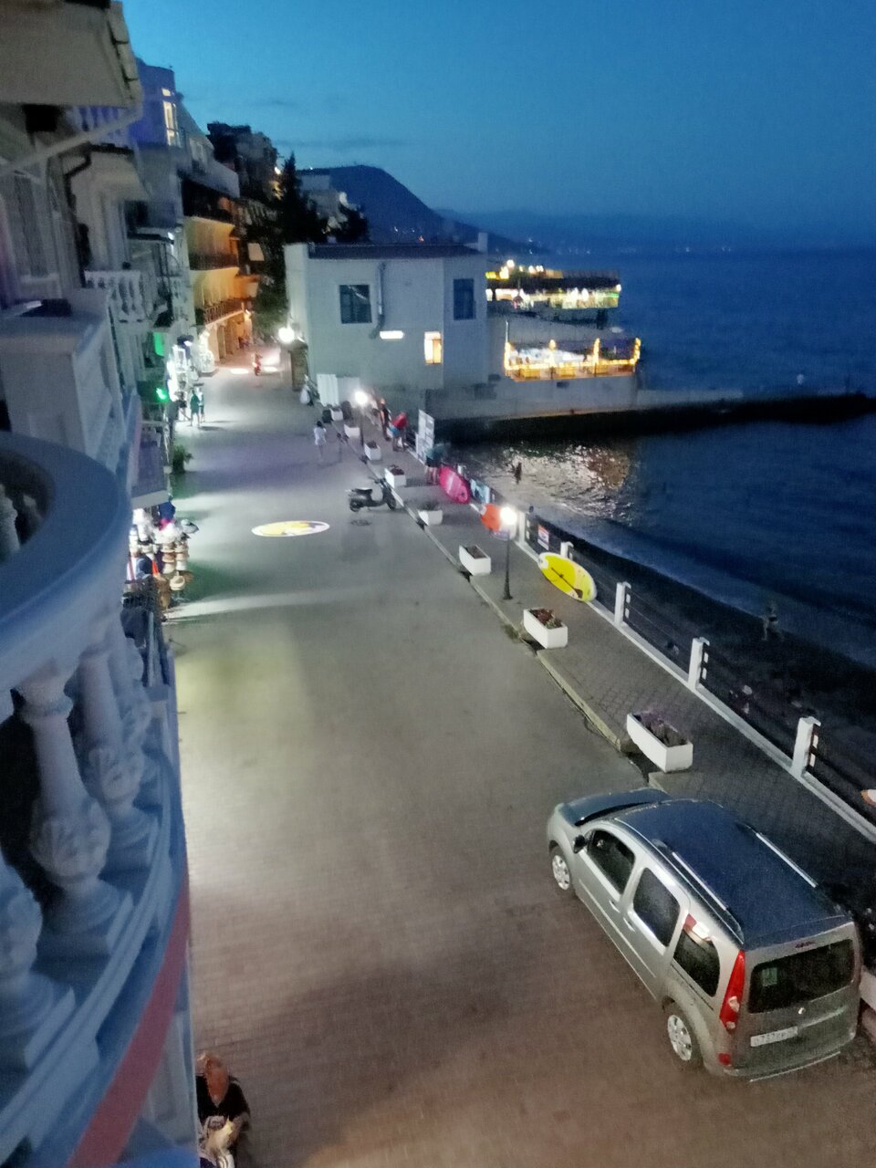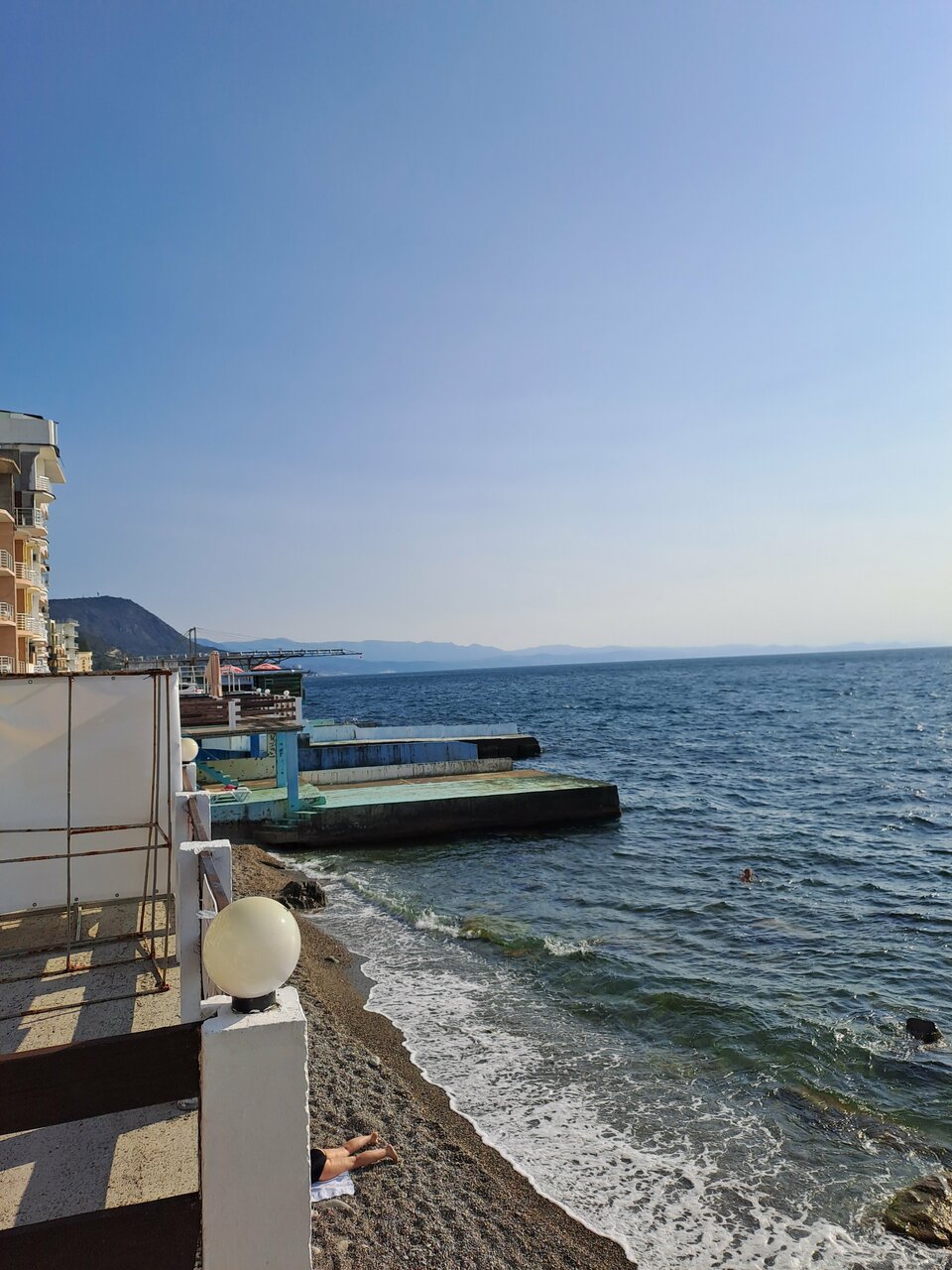 Вид с балкона нашего номера — это самое заветное желание любого отпускника! Море, море, море и всё! На балконе качелька плетёная, столик. Это идеальное место для романтика на уикэнд. Формат посёлка я не поняла. Похож на гаражный кооператив 80х годов, который в силу современных тенденции перерос в десятки отелей-столбиков. Да и сильно напрягает движение авто по крохотный набережной, где все гуляют. Отель рекомендую для романтичных вечеров, винишка на балконе и созерцания моря. Но, на 2-3дня.