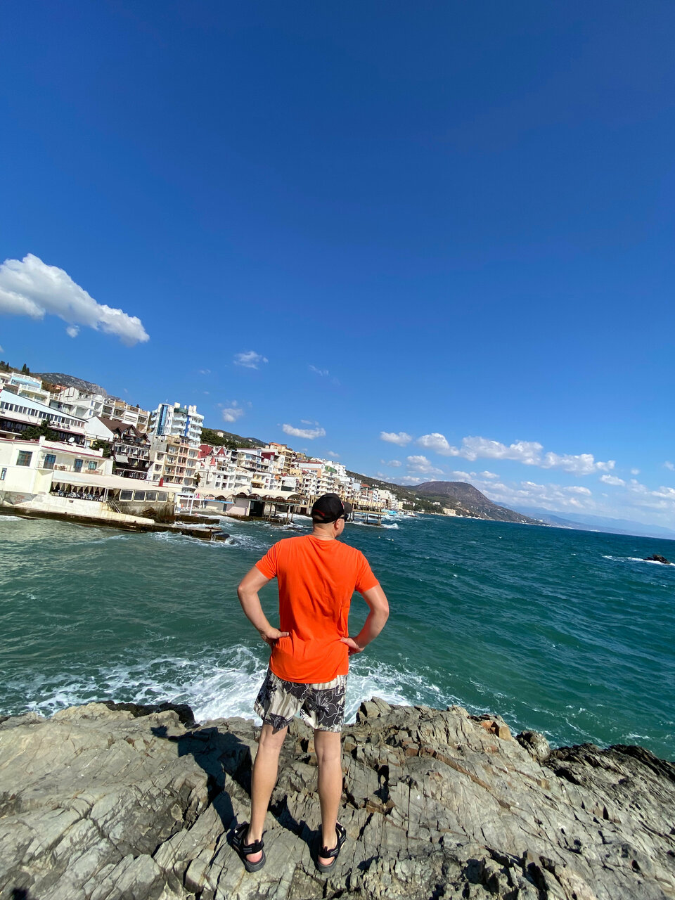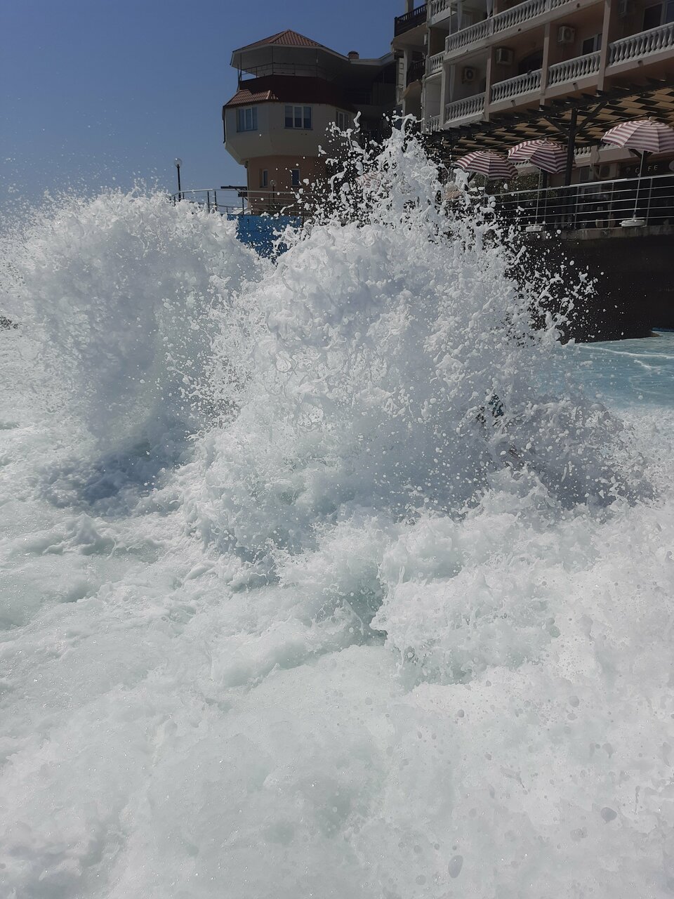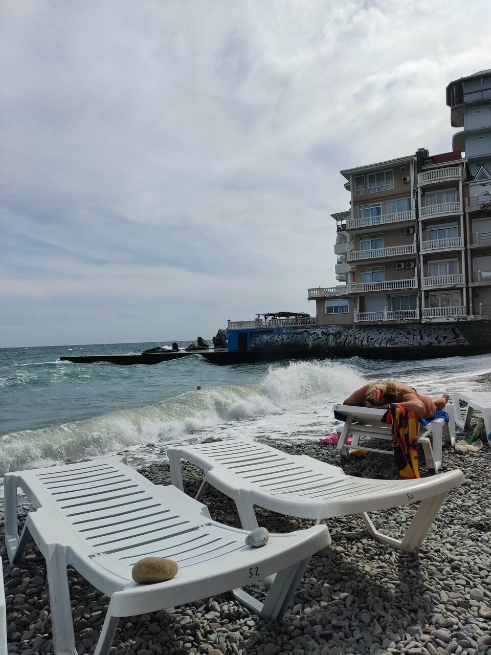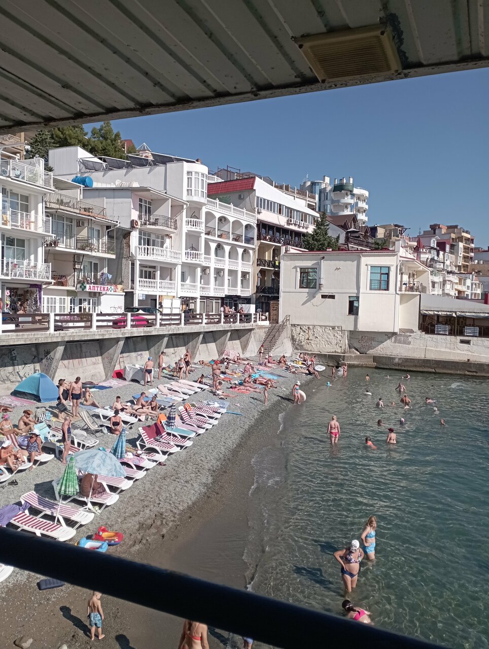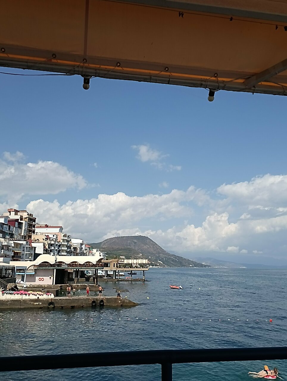 Вид с балкона нашего номера — это самое заветное желание любого отпускника! Море, море, море и всё! На балконе качелька плетёная, столик. Это идеальное место для романтика на уикэнд. Формат посёлка я не поняла. Похож на гаражный кооператив 80х годов, который в силу современных тенденции перерос в десятки отелей-столбиков. Да и сильно напрягает движение авто по крохотный набережной, где все гуляют. Отель рекомендую для романтичных вечеров, винишка на балконе и созерцания моря. Но, на 2-3дня.