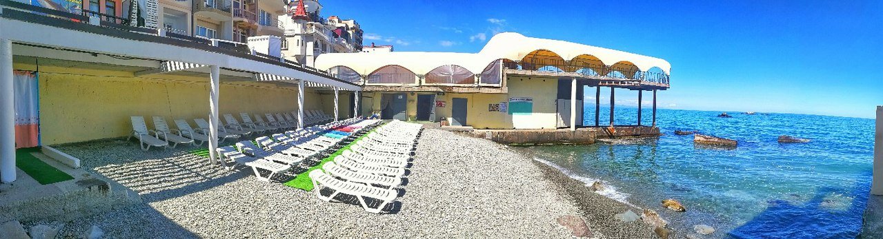 Отличная гостиница, с прекрасным сервисом! Всё есть. В двух метрах от моря! Со своим пляжем, на котором всё есть.