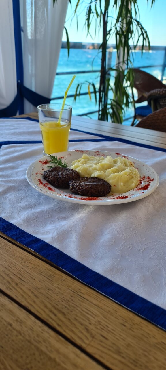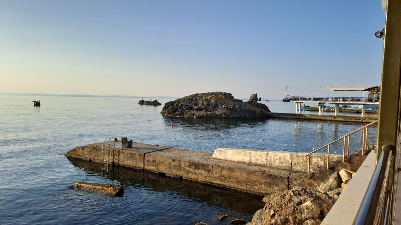 Первая линия от берега, часть номерного фонда с прекрасным видом на море Персонал приветливый, рассказывают о деталях заселения Номера чистые, предоставляются полотенца (часть уже видно застиранные), в ванной плитка уже со сколами и поддон душевой требуется ремонт Очень хорошая слышимость, прям очень. Если хотите повеселится это не то место Имеется своя баня и хамам, с маленьким мангалом и небольшой комнатой отдыха, единственное, что место для окунания в море после парения не оборудовано, а по комянистому дну тяжело заходить и выходить. Температура в бане шпарит Можно заказать при заселении завтраки, 4 вида на выбор. От гостиницы нужно будет пройтись в ресторан. Готовят по среднему, стандартные блюда без разнообразия