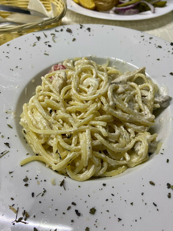 Обидно когда повар не может отличить феттучини (заявлено в Меню) от спагетти и не знает что такое соль и специиу мужа был резиновый и безвкусный свиной ошеек, пожевал подошву. самая безвкусная еда здесь