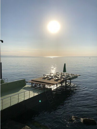 Отличная гостиница расположенная в самом центре поселка, имеется лифт. Так как поселок на очень крутом склоне можно не обходя остальные гостиницы выйти на вторую линию, чтобы подняться на парковку. Жили на первой линии 4й этаж номер с видом на море, до моря 7 метров. Плавать либо пляж из плит отеля, либо городской галька и там и там лежаки. Номер светлый и чистый, балкон, большой холодильник! Очень веселый и приветливый владелец! Рекомендую.