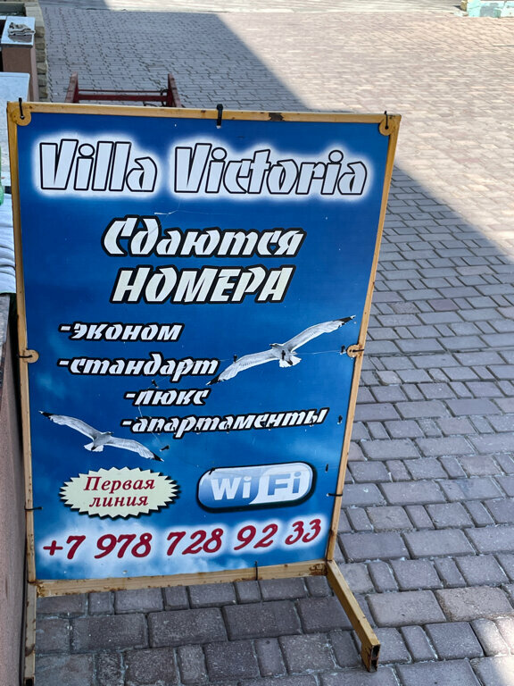Вилла Виктория — гостиница в поселке Утес, расположенная по адресу ул. Гагариной, 25/122. Работает круглосуточно, без выходных. Номера оснащены кондиционером, телевизором, холодильником, феном и бесплатным Wi-Fi. Гости могут воспользоваться общей кухней, стиральной машиной и утюгом. На территории есть лифт, а также собственный галечный пляж. Разрешено проживание с животными. Контактный телефон: +7 (978) 728-92-33.