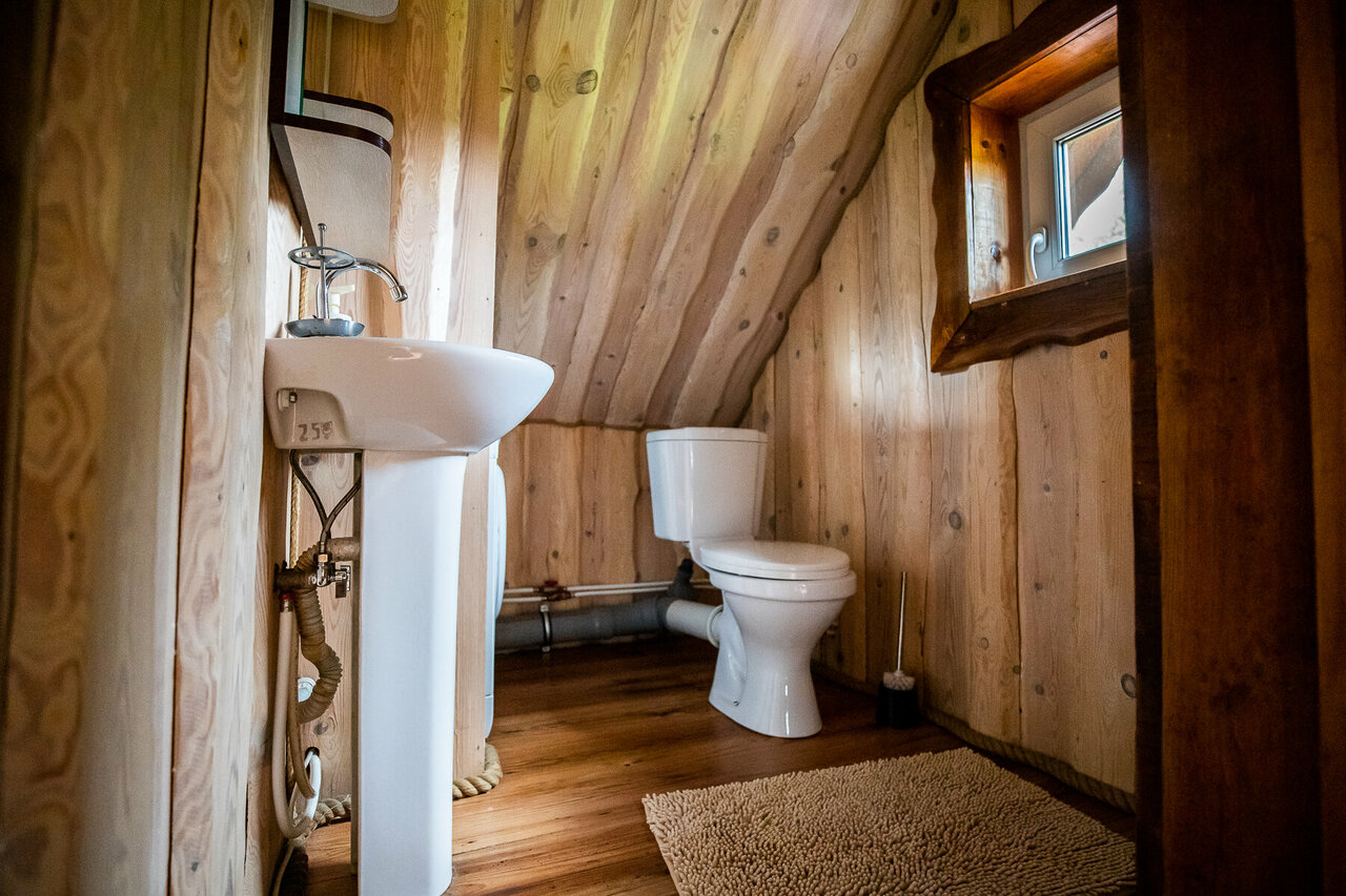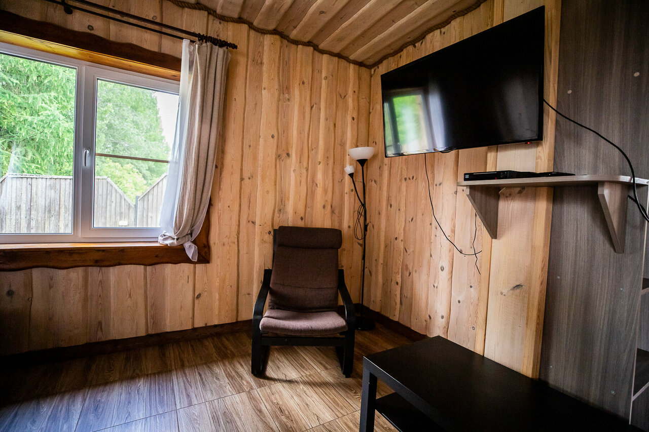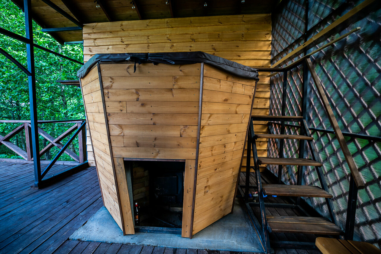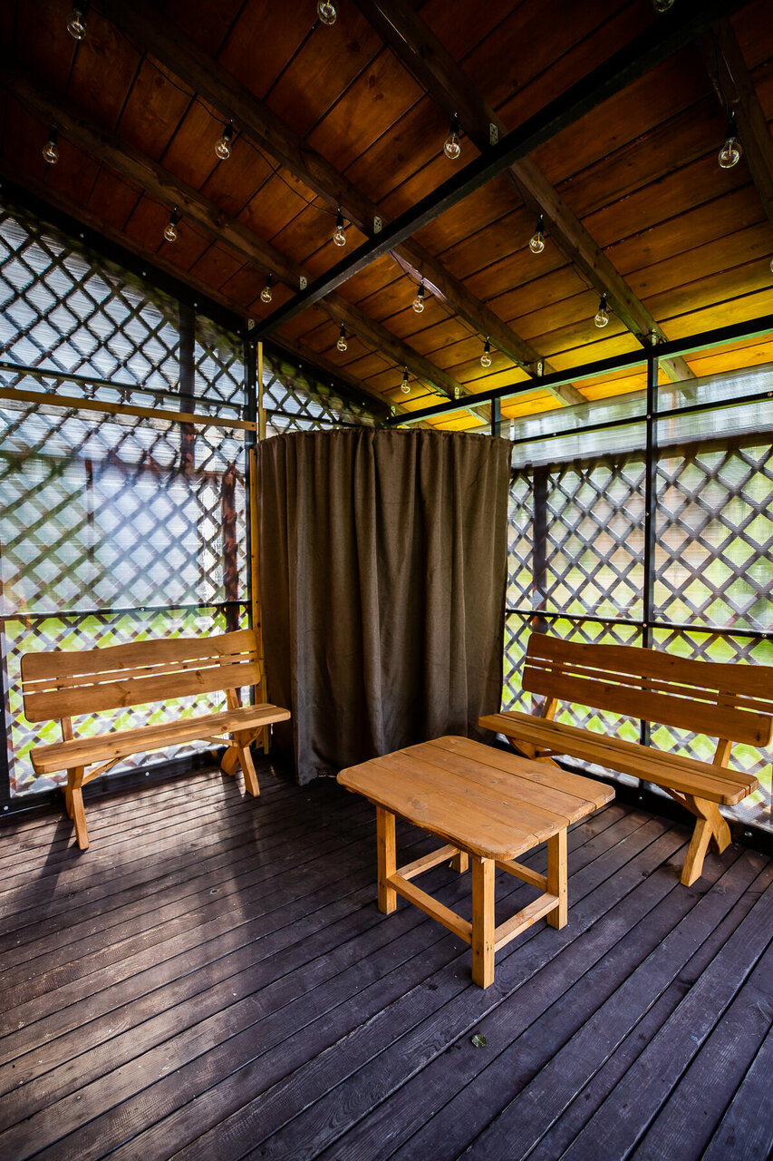 - Комфортное проживание в домиках (есть вся бытовая техника, включая посудомойку).