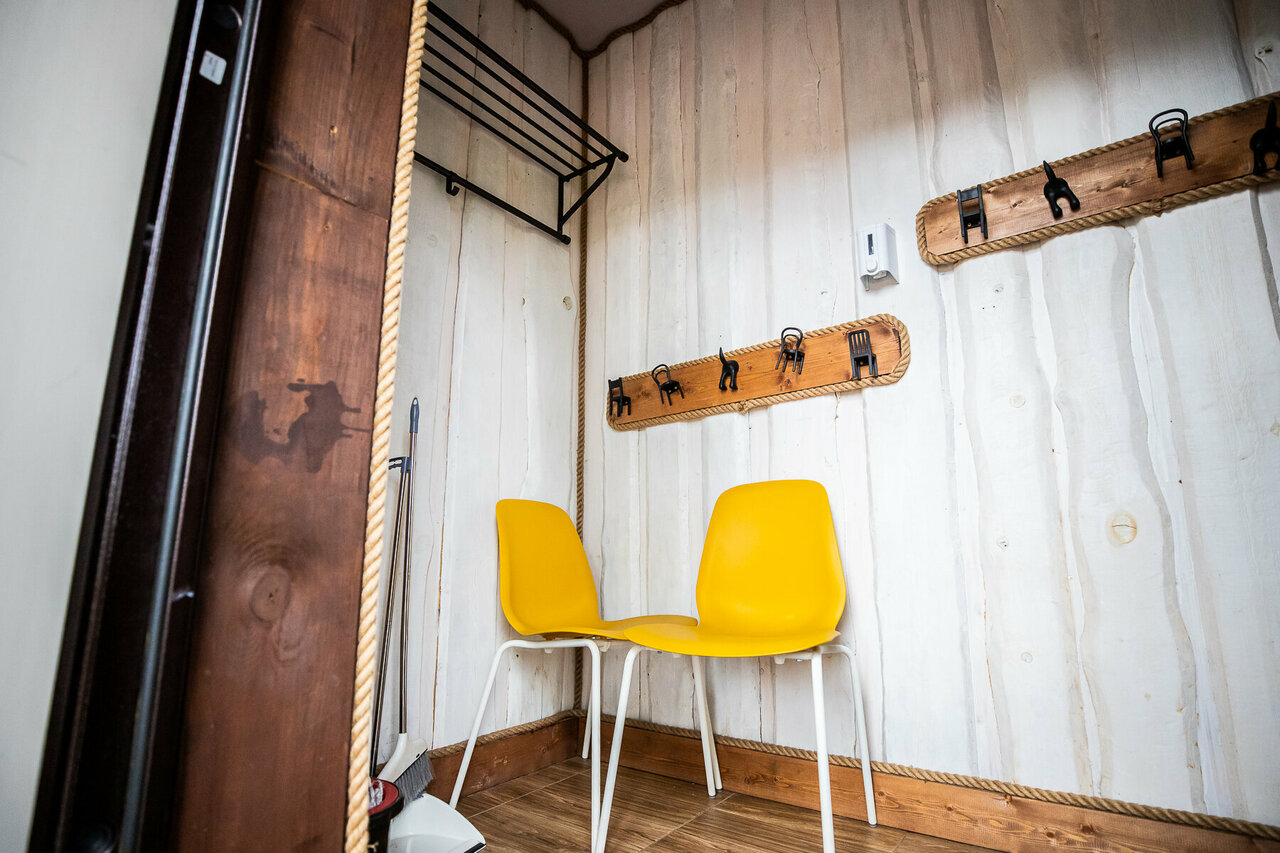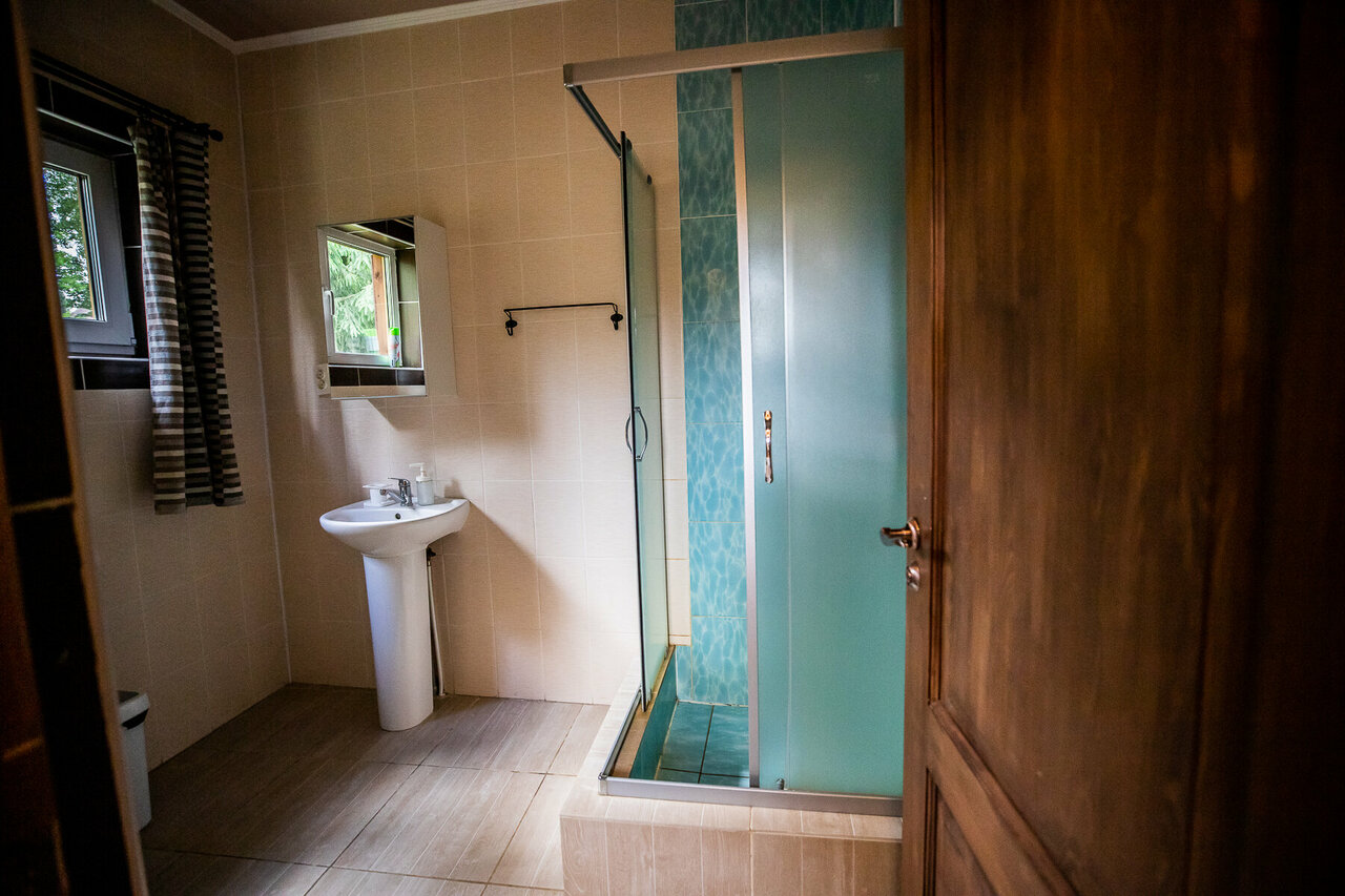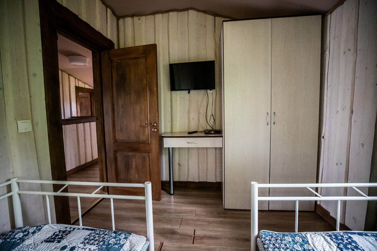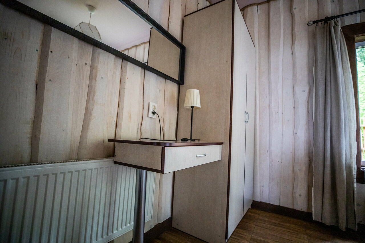- Комфортное проживание в домиках (есть вся бытовая техника, включая посудомойку).